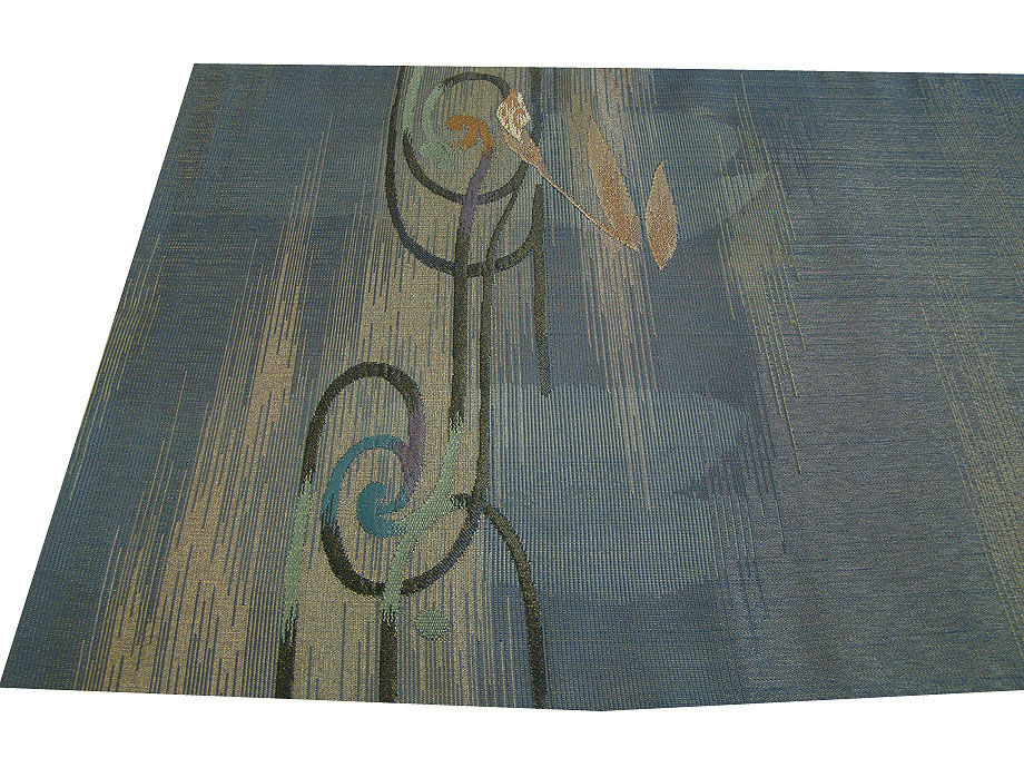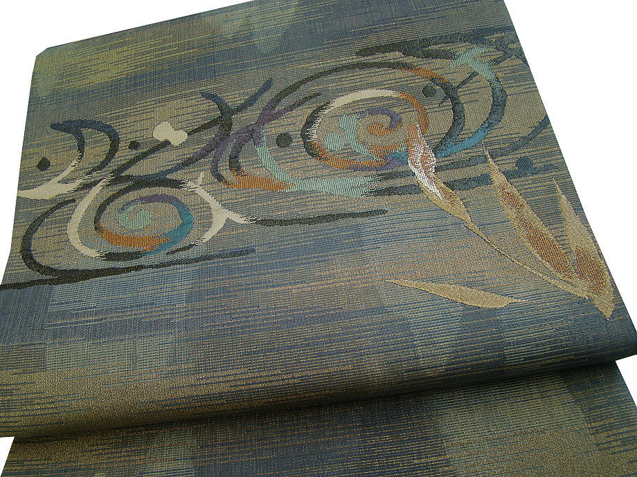 | 商品説明 | しなやかな結び易い西陣織、紬地の袋帯。 鉄御納戸色地に金色、墨色、木肌色、赤茶色、青磁色等の織柄。 たいこ柄。 |