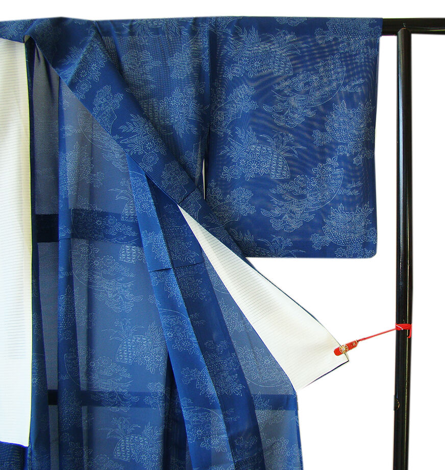 | 商品説明 | こちらのお品は夏物でございますので、7月~8月にお召頂ければと思います。 「絽」と言えば、紗と双璧を成す夏のお着物の生地で その最大の魅力は絶妙の透かし加減でございます。 清涼感溢れる地の風を通すしなやかさは夏に着物を着るという贅沢を 快適に愉しませてくれることでしょう。 着物には、大きく分けて「袷(あわせ)の着物」と「単衣(ひとえ)の着物」と「夏着物」があります。 反物(表地)を着物に仕立てるときに、裏地類をつけるものを袷の着物、 つけないものを単衣の着物と呼び、胴裏や八掛といった裏地がつかない一枚ものの着物です。 また裏地がないため、座る時などにヒップのラインが目立たないよう、 居敷当て(いしきあて)の生地をつけることもあります。 居敷当ては付いておりません。 とてもしなやかなさらっとした肌触りが極上の着心地を誘う滑らかなしっかりとした「駒絽」の生地は、 青藍色地に灰青色の地紙文に花草、七宝文等の染柄が洒落感高い着物姿を演出しております。 |