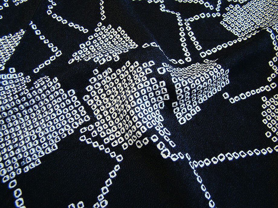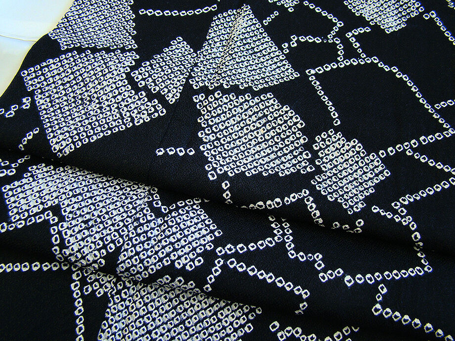 ★美品★帯や小物次第で様々な表情をお愉しみ頂ける逸品! 極上ちりめん地の黒地に人気の鹿の子絞りの粋な小紋(正絹) P624★ | |