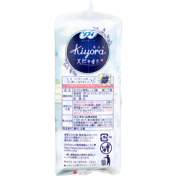 天然成分配合の香りつづく♪さらさらキレイ! ホワイトフローラルの香り! やさしいフルーツの香りと、清潔感あるフローラルのやわらかな香りが広がります。 ・「さらさらキレイ!」のヒミツ おりものや汗をすーっと引き込みベタつきを軽減。 全面通気シートで、ムレを防ぎます。 ・「においマスキング」のヒミツ おりもののにおいを軽減するから、クリアな香りを楽しめます。 ・フラワーデザインの個別ラップ 個装サイズ:150X135X60mm 個装重量:約115g 内容量:72個入 製造国:日本 【発売元:ユニ・チャーム株式会社】 【構成材料】 表面剤:ポリエチレン、ポリエステル 色調:白、香料 【サイズ】 14cm 【使用上の注意】 ・生理日以外にお使いください。 ・お肌に合わないときは医師に相談してください。 ・使用後のライナーは個別ラップ(やわらかラップ)に包んですててください。 ・トイレにすてないでください。 【保管上の注意】 ・開封後はほこりや虫などの異物が入らないよう、衛生的に保管してください。 注意事項 予告なく成分・パッケージが変更になることがございます。 予めご了承ください。 *予告なく成分・パッケージが変更になることがございます。予めご了承ください *ダンボールを使用して発送する場合には、入数以下の個数の場合、 中古ダンボールを使用する場合があり、ご注文の商品とは異なるダンボールになる場合があります。 あらかじめ、ご了承ください。 |