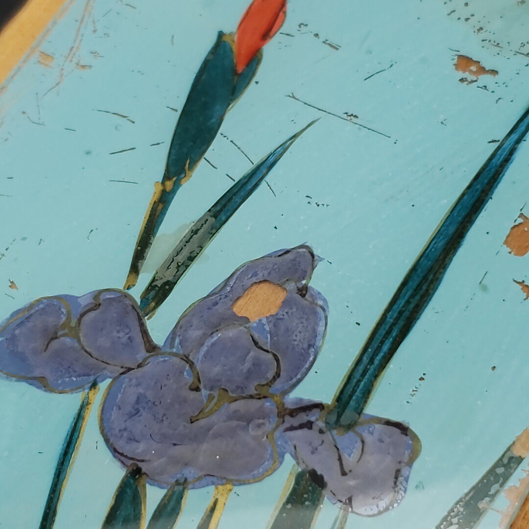 希少な古いガラス絵、ガラスの裏側から絵が描かれております。 | 和風インテリアやコレクションにいかがでしょうか。 発送サイズ |
