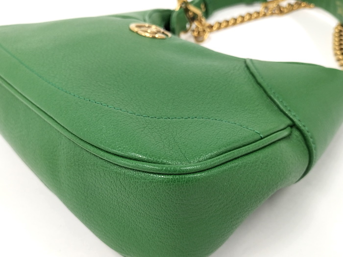 | ◆商品情報 | ・カラー:グリーン ・素材/ライン:レザー ・サイズ:最大約 W26×H13×D5(cm) ・ショルダーの長さ:最大約37-41(cm) ・チェーンショルダーの長さ:最大約47(cm) ・連結後の長さ:最大約97-107(cm) ※多少の誤差はご了承下さい。 ・内側:カード入れ×2 |