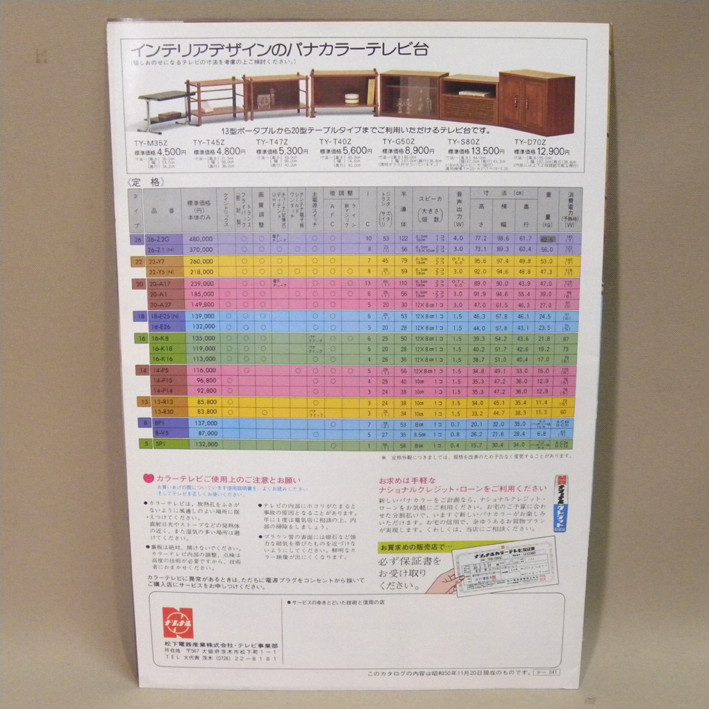 1970年代当時物「ナショナルパナカラー テレビ クイントリックス」のカタログです。サイズは縦約30cm、横約21cmです。| 出价者 | 信用 | 价格 | 时间 |
