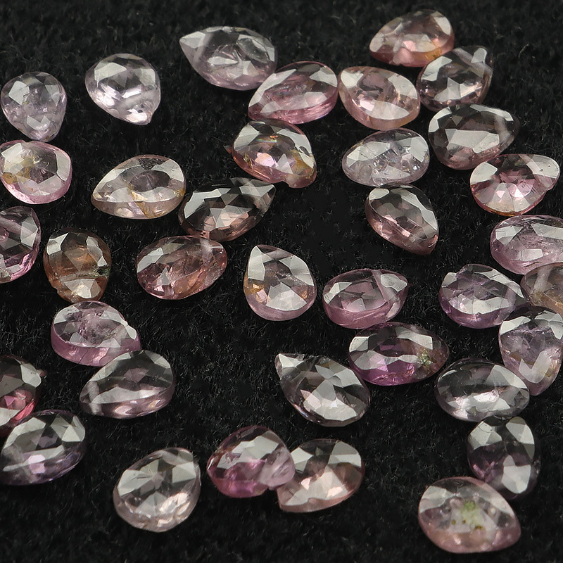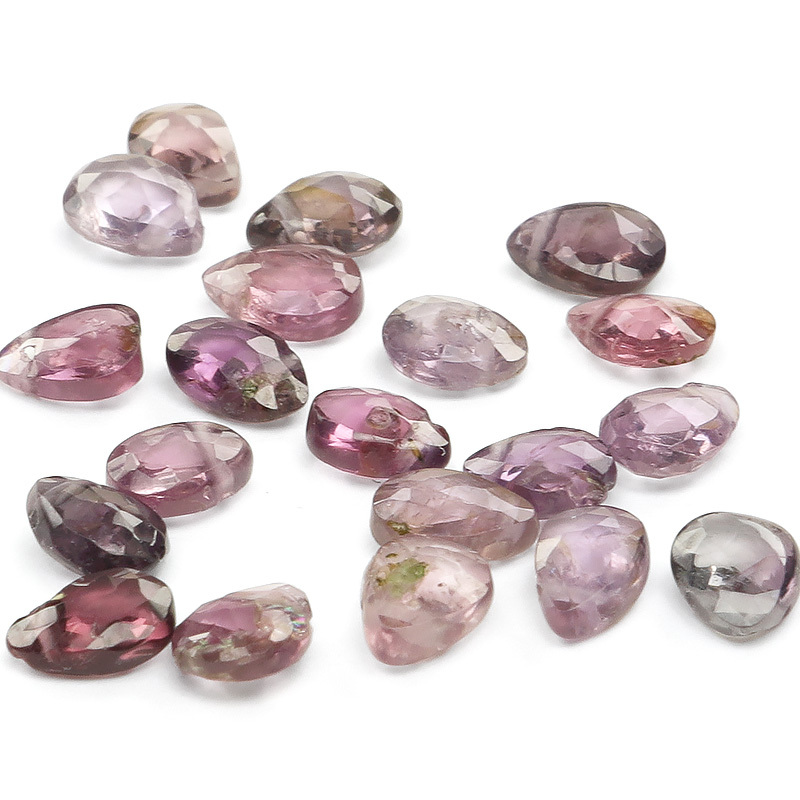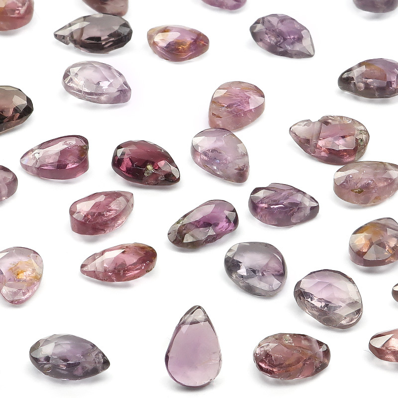 落ち着きのある様々な色合いが詰まったマルチカラースピネルのペアシェイプカットです。