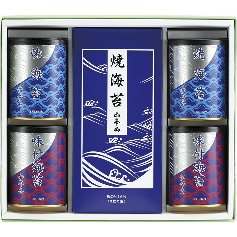 お食事サイズにカットした焼海苔・味付海苔に手巻き、おにぎりと様々なご用途にお使いいただける板のりの詰合せです。| こちらの商品の配送について |