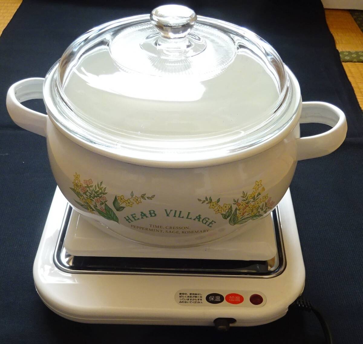 | 商品説明 | ・ほうろう鍋 27cm 2.77リットル (ガラスふた付) ・加温 保温トレー サイズ:H5cmXW23cmXD26cm 重さ:865g 機能:加温(320W)/保温(90W) (切替スイッチ付) コード長:1.4m |