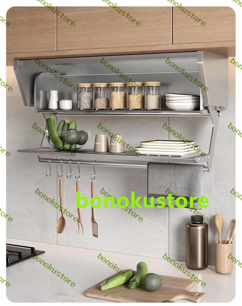 キッチン調味料収納棚折りたたみ収納棚多機能ドロップダウン式昇降引籠ハンガー下調味食器棚収納神器ハンガー下調味料収納棚壁収納キャビネット折りたたみ昇降引籠ロッカー (L60*W21.5*H15CM 銀色)