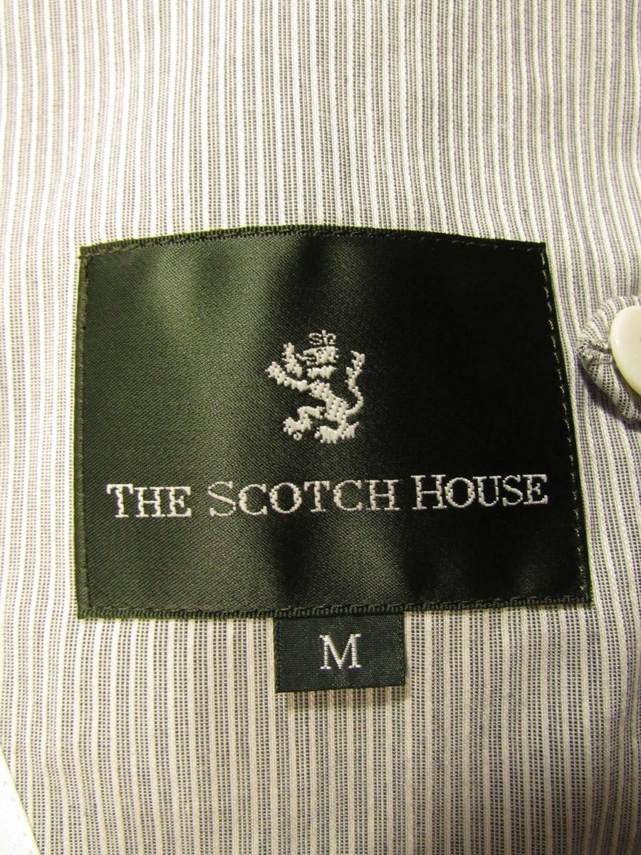| 1839年にスコットランド出身のガーディナー兄弟によってロンドンで創立され、日本では三陽商会がライセンス展開する「The Scotch House」 生地は麻混で、薄手の涼しげな素材です。 裏地は背抜きで袖裏地は七分程までとなっており、肩パッドはなしの軽快な仕立てとなっております。 背中のサイドにはアクションプリーツ入りです。 サファリジャケットの雰囲気も感じさせるジャケットです。 メンズ・麻混・カジュアルジャケット/春夏 シングル3つボタン/ノーベント/裏地-背抜き・袖裏地は七分程まであり/大見返し/肩パッドなし/両胸フラップパッチポケット/腰フラップパッチポケット(外ヒダ)/ブランド刻印ボタン |