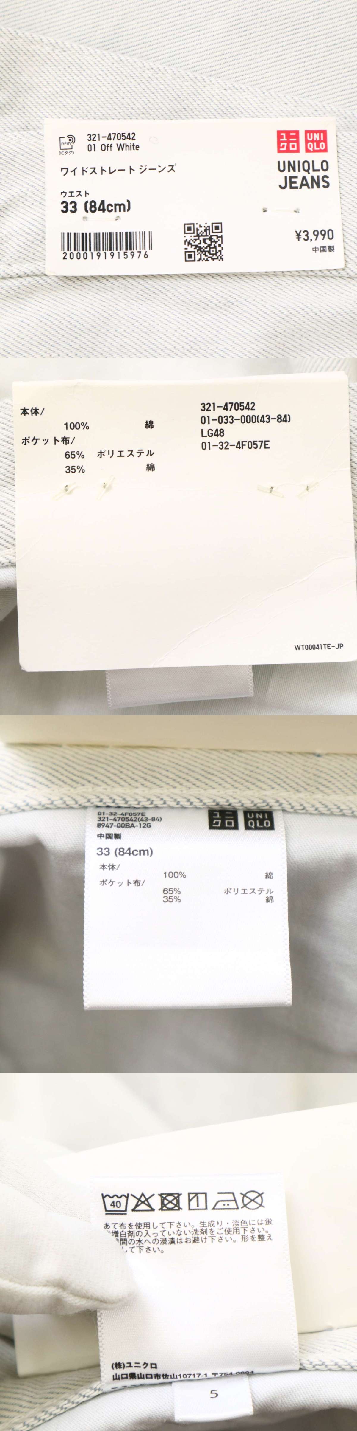 | 【新品 24AW】 UNIQLO ユニクロ 通年★ ワイド ストレート デニム パンツ ジーンズ Sz.33 メンズ オフホワイト 白 未使用 C5B01226_3#R | |||