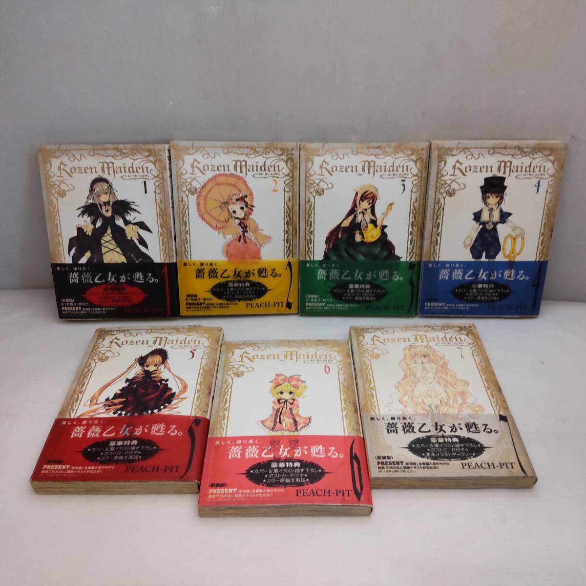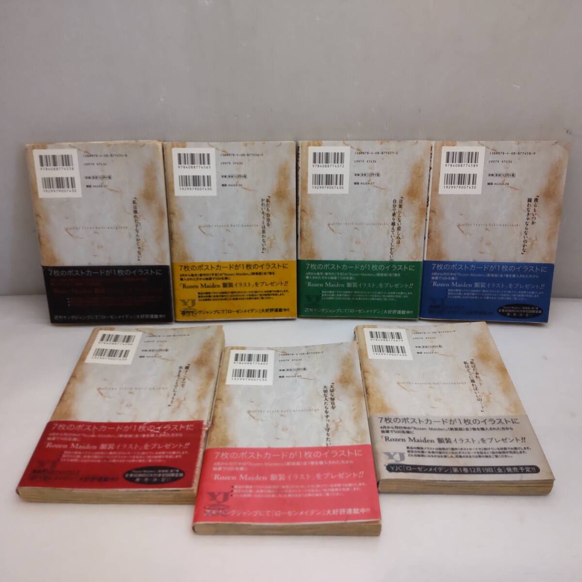 Rozen Maiden 新装版 全7巻 ローゼンメイデン 1~6巻と8巻 Rozen Maiden 新装版 第1巻以外は全て初版本です。 新装版巻末のポストカードは全てあります。 ローゼンメイデン第2巻以外は全て帯付きです。 スレキズ汚れがあり、帯に軽い破れや折れがあるものもありました。 天地小口に焼けが見られます。 簡単に検品しましたが、本文に破れや書き込みは見られませんでした。ですが、見落としはあるかもしれません。 | ||||