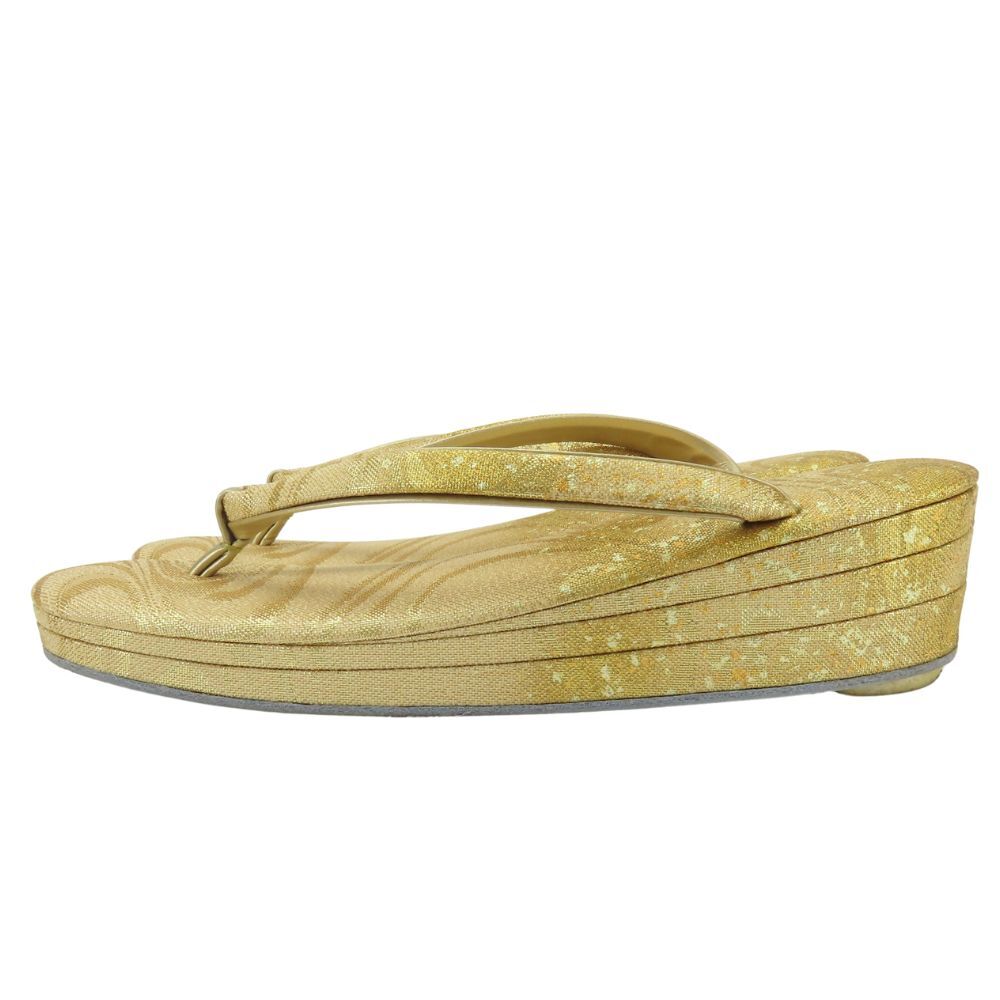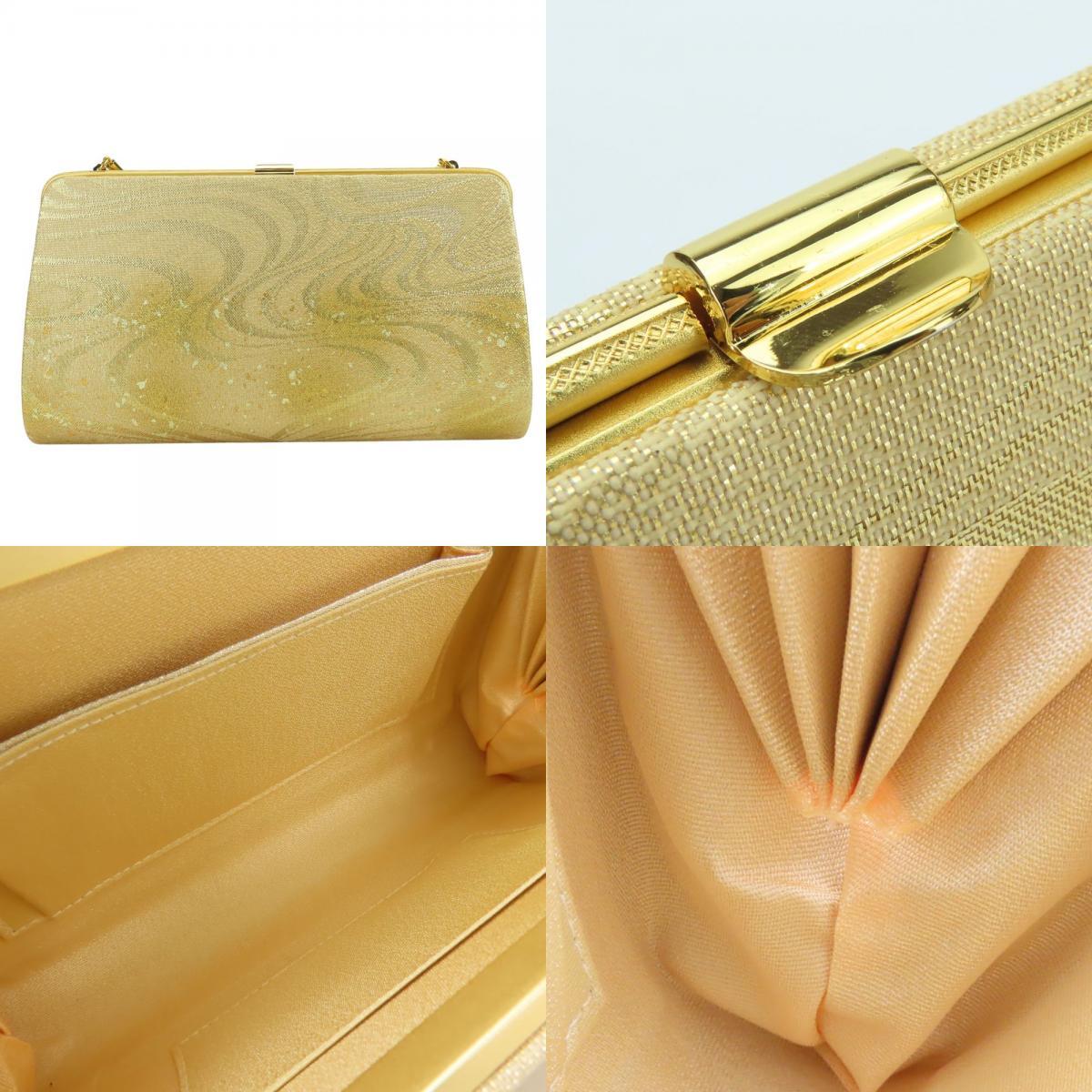 | 品名 | 【中古】 和装バッグ 草履バッグセット 流水模様 箔 正絹(金銀糸除く) 合成皮革 ゴールド ゴールド金具 レディース 女性 |