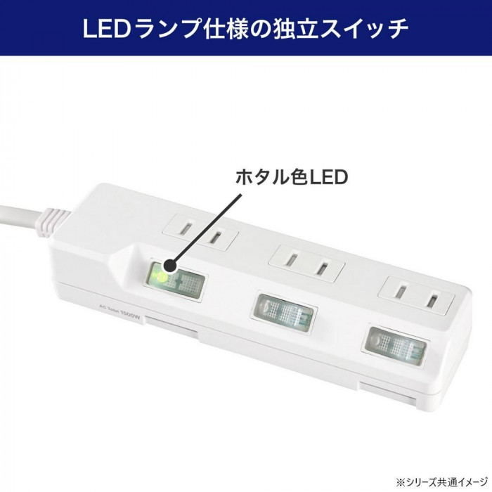| 仕様 | 定格:AC125V 15A 合計 1500Wまで 使用温度範囲:-10度~40度 コード長:5m 口数:3個口 屋内専用 |