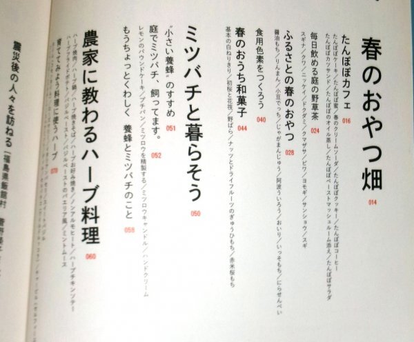 | 【主な内容】 【巻頭】 〇たんぽぽカフェ 【特集】 〇春のおやつ畑 ・食用色素をつくろう ・春のおうち和菓子 〇ミツバチと暮らそう 〇農家に教わるハーブ料理 ……など | |