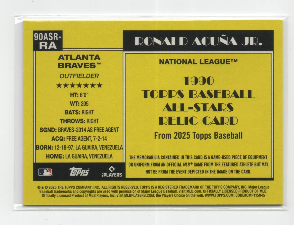 2025 TOPPS Series 2、カードNo.90ASR-RA [RONALD ACUNA JR.] Game Used Bat ALL-STAR Relic Card | 出价者 | 信用 | 价格 | 时间 |