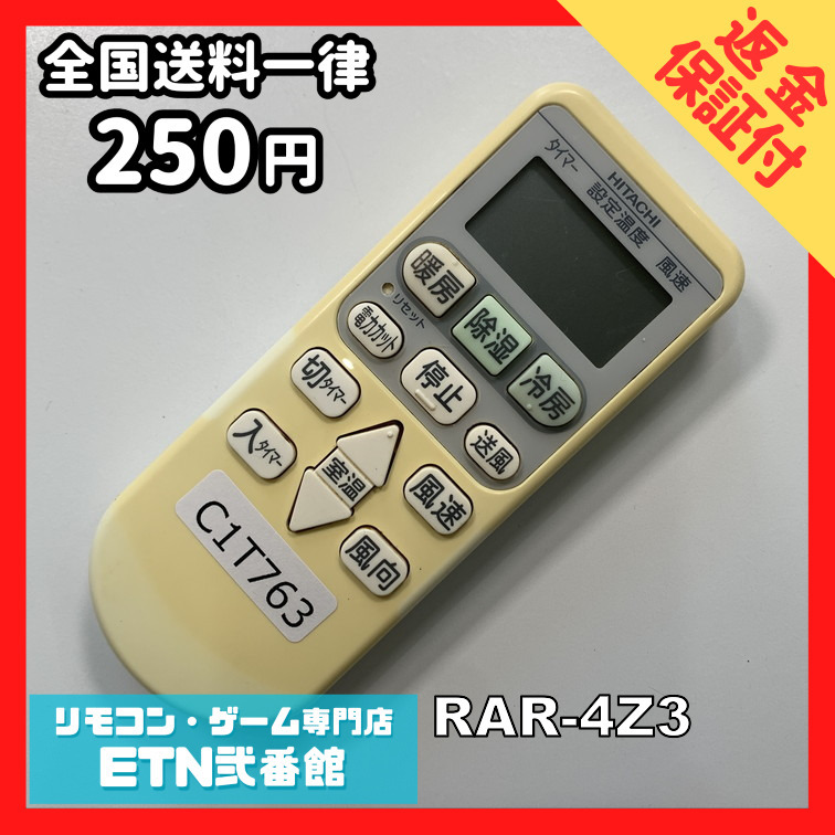 C1T763 【送料250円】エアコン リモコン / 日立 ヒタチ HITACHI RAR-4Z3 動作確認済み★即発送★ 冷房 暖房