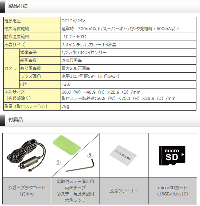 安心の日本製メーカー3年保証GPS搭載のスタンダードモデルドライブレコーダー。 詳しくはメーカーサイトをご覧ください。 (※出品ページ記載の製品情報や適合情報は製品発売当時の情報となります。必ずメーカーホームページで最新情報をご確認の上ご注文ください。) | ||||||