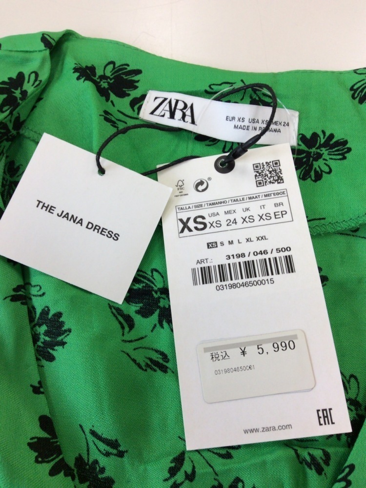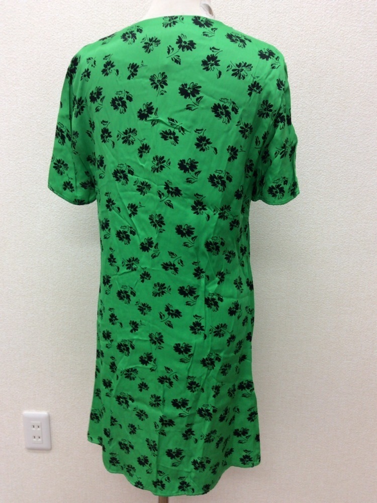 | 管理番号:99^129841 ザラ タグ付き! 鮮やかなグリーンのワンピース 黒の花柄 表示サイズ:XS 実寸(参考)