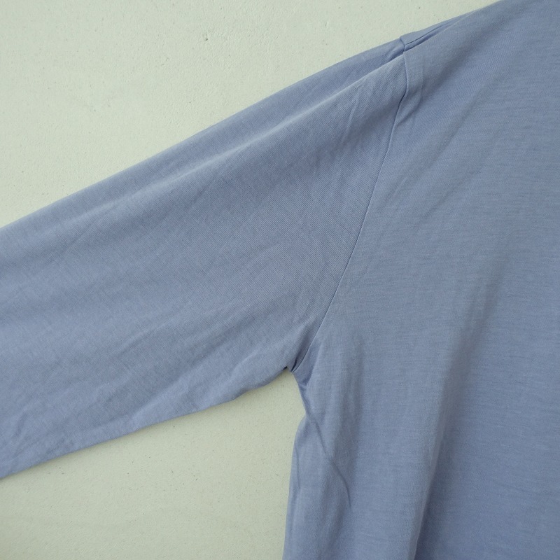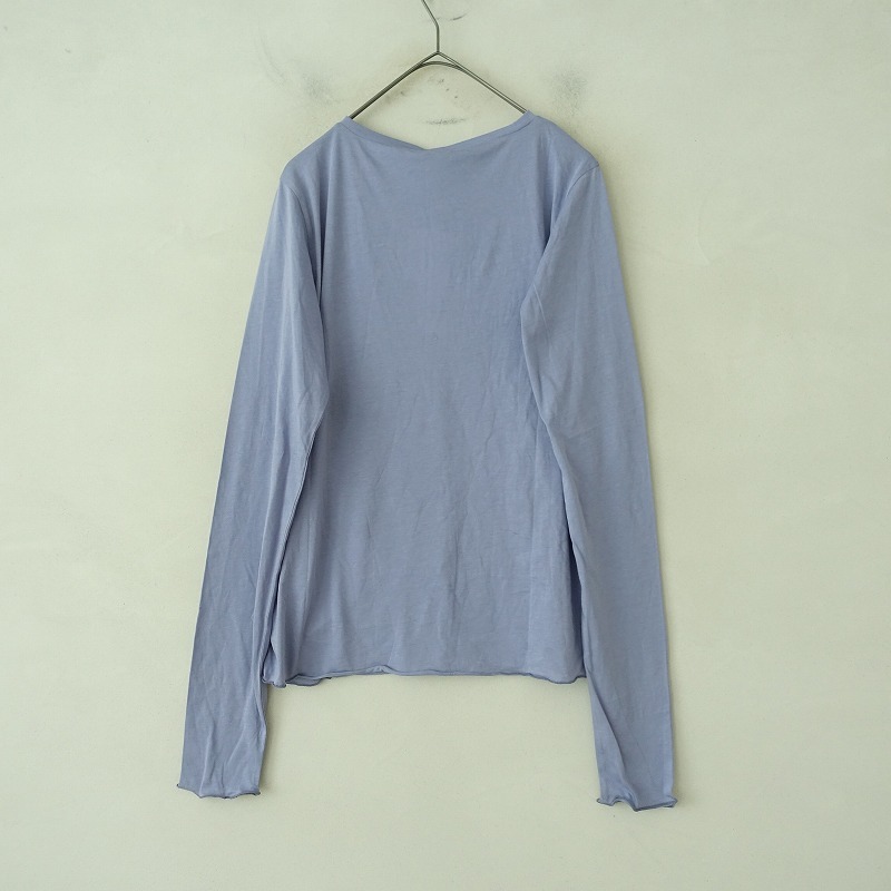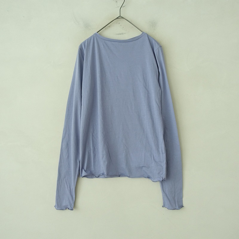 | ICHIのコットンカットソーです。カラーは青みがかったライトパープルで、薄手の天竺ニット地です。プルオーバータイプで着脱でき、袖口&裾はロック仕様です。 |