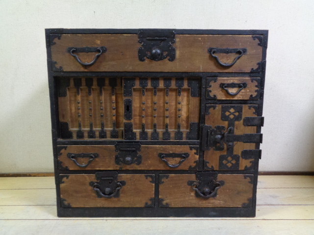 サイズ約、幅73cm 高さ66.5cm 奥行38.5cm 前板は桐の無垢材、他は杉の無垢材です。カギ無し。経年劣化によるしみ汚れ、擦れ傷、板の乾燥割れ、金具のサビ等有ります。引き出しの(内面、汚れ有り)動きはスムーズです。発送アートセッティングデリバリー家財おまかせ便Bランク(ドライバースタッフ2人設置まで可能)参考送料 北海道札幌5.790円 宮城県4.510円 東京都5.680円 大阪府6.710円 福岡県8.800円発送は迅速に対応いたしますが地域によって到着まで数日~1週間かかります。古い物ですのでご理解いただける方、終了後2日以内の返信、入金頂ける方お願い致します。商品到着後、受け取り完了の操作は必ずお願い致します。 【注】 ■取引について■アートセッティングデリバリー より配達前に連絡が必要となりますので取引ナビより、お電話番号のご連絡を頂ける方のみ入札をお願い致します。