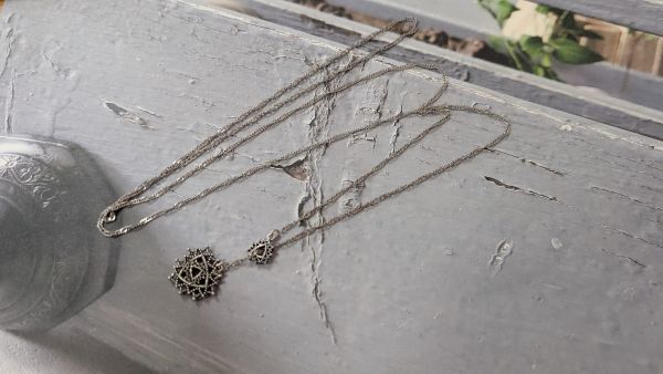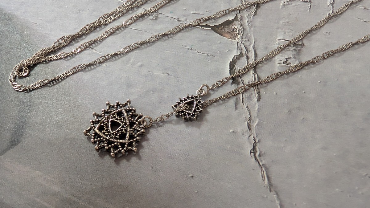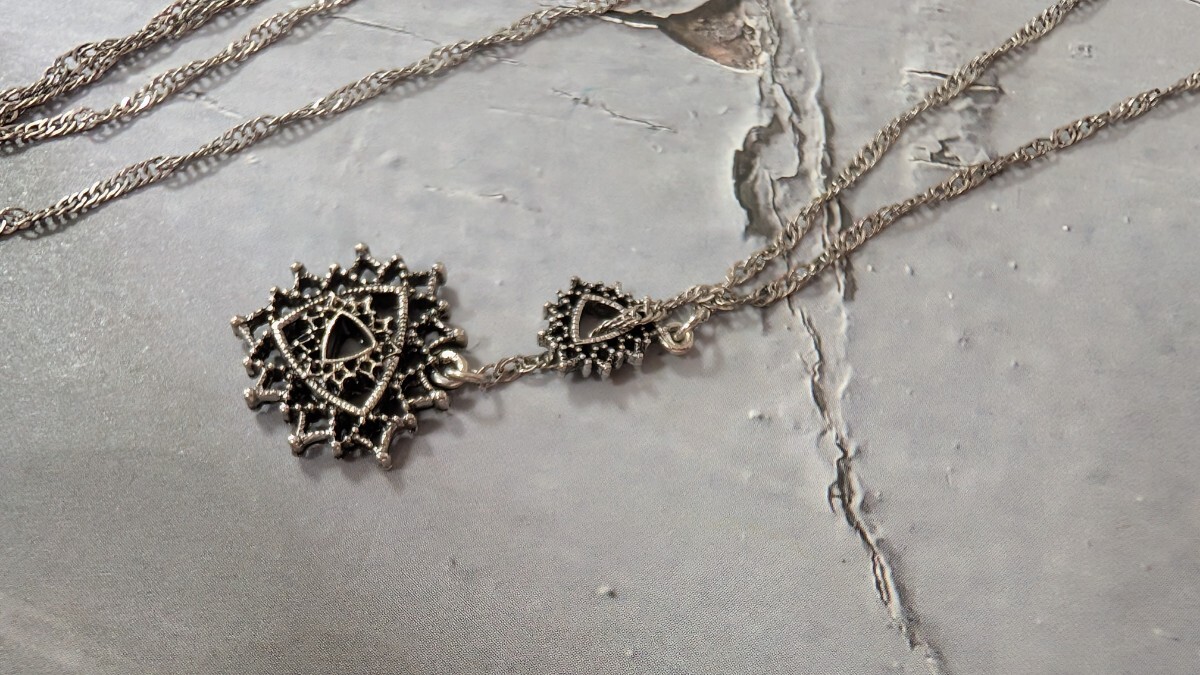 | シルバーカラー・透かし彫り ロングネックレス | |