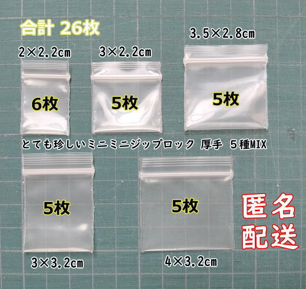 ◎非常に珍しいミニミニジップロック 厚手 6種MIX 26枚 | 出价者 | 信用 | 价格 | 时间 |
