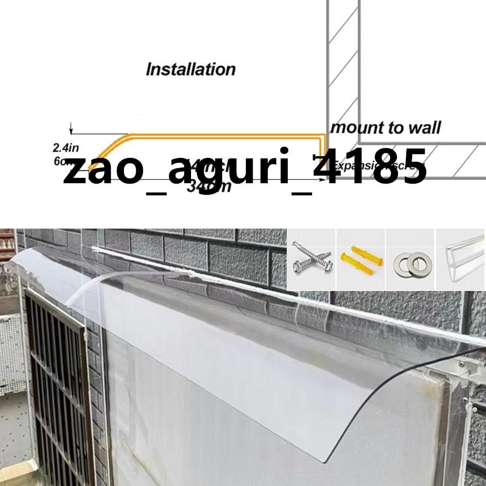 ドアや窓の庇をお探しですか? 透明で安全でお手入れが簡単なこのポリカーボネート製オーニングは、雨や雪をはじき、UV 保護機能があり、建設業界で働く人に強く推奨されています。取り付けが簡単、穴はキャノピー用に確保されており、ゴム製のシールリングがジョイントに固定されており、取り付けと分解が簡単で、耐久性と耐摩耗性があります。仕様:1.製品の材質:3.5mmポリカーボネート2.製品幅:40cm~500cm(複数の幅を自由に組み合わせることができます)3. 製品の奥行き: 40cm4. 製品重量: 700g/㎡5. 付属品: 固定ネジ、透明粘着ストリップ、透明日よけ