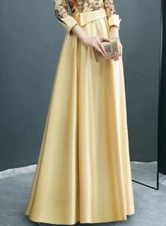 トップス部分のレースの透け感とゴールドのビジュ-飾りが輝きを放ち豪華かつ上品でエレガントなドレスです。