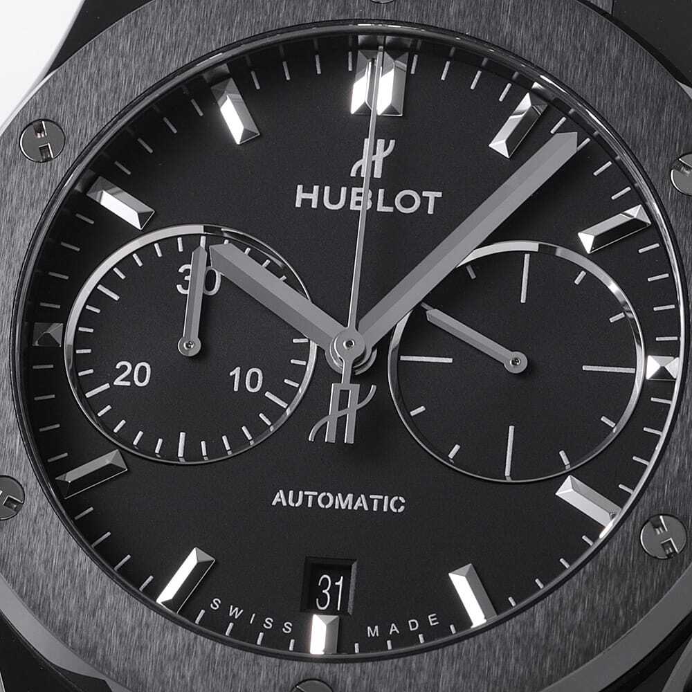 | モデル情報 | ウブロが掲げるフュージョン・コンセプトとクラシックシリーズが融合して生まれたクラシックフュージョン。こちらはブラックセラミックケースにブラックの文字盤というクールなオールブラック仕様のクロノグラフモデルです。様々な素材が組み合わさりながら上品な仕上がりとなっている一本です。 |