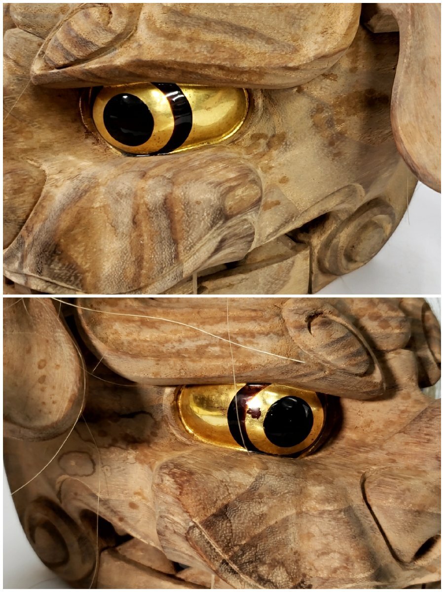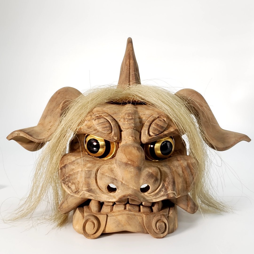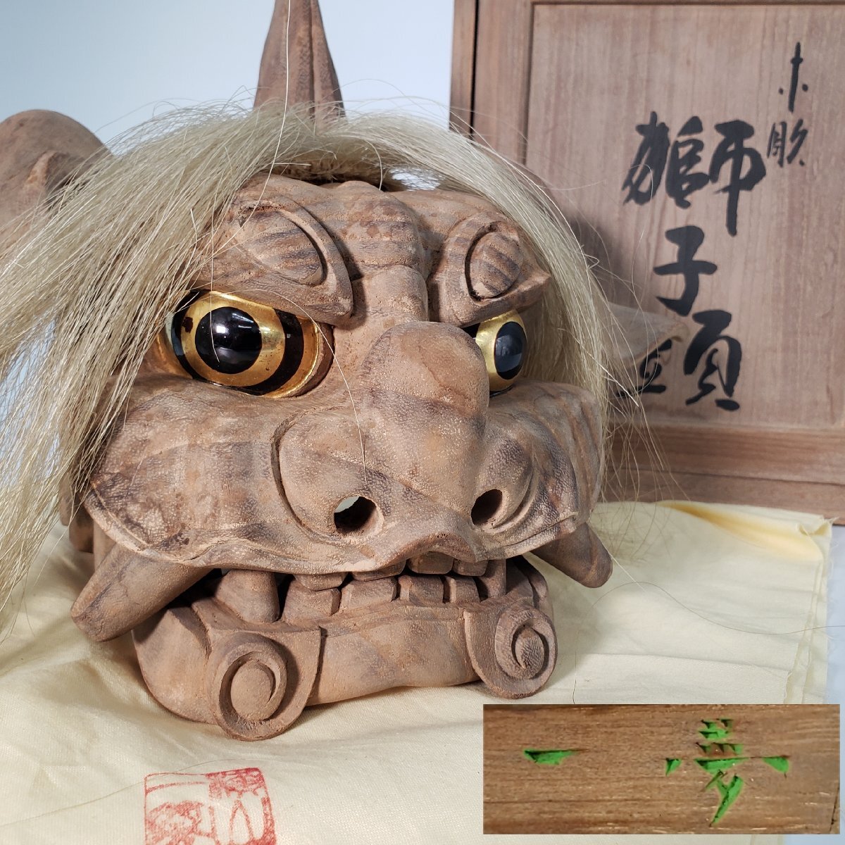 | 商品名 | 横山一夢作 獅子頭 幅31cm 高さ21cm 井波彫刻 共箱 共布 彫刻技術 細密彫刻 木工芸 伝統工芸 旧家 獅子舞 旧家蔵出し | ||||||||||||