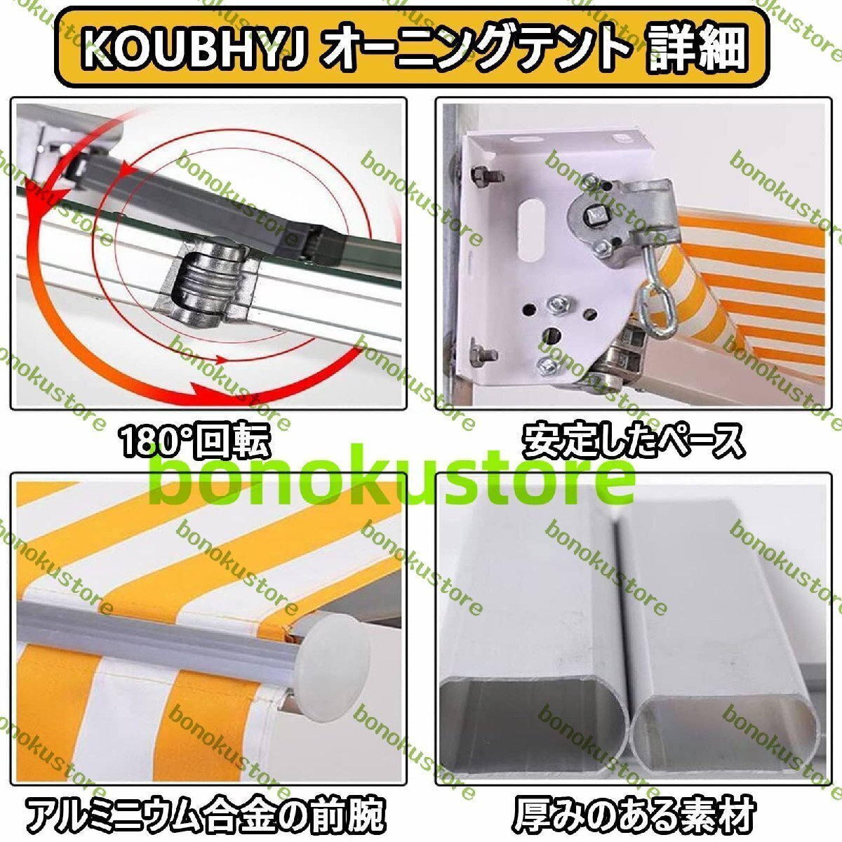 ??【日除け 耐久性のある素材】手動オーニングテントパティオの日よけフレームは、頑丈で耐久性があり、安定性に優れた高品質のアルミニウム合金で作られています。スチールスクエアトーションバーとアルミニウムローラー、他のトーションバーなしの日よけよりも耐久性があり?| 出价者 | 信用 | 价格 | 时间 |