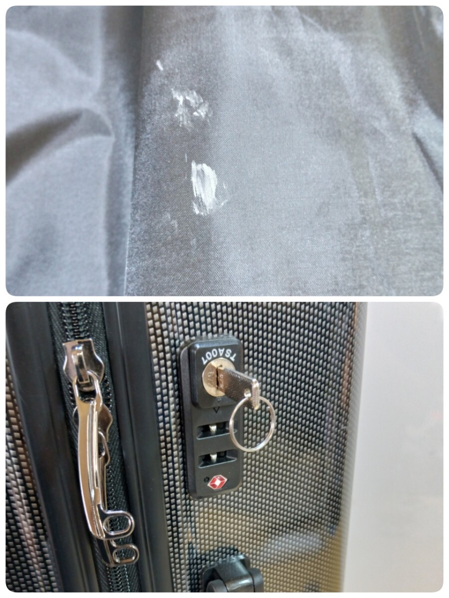 ローラーの部分や中のシートが汚れや傷がありますが数回使用の為、比較的綺麗です。