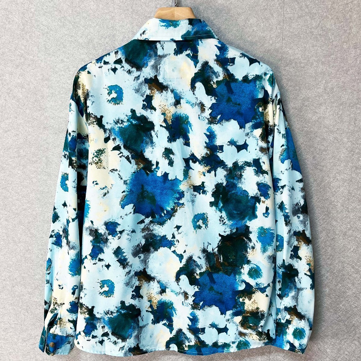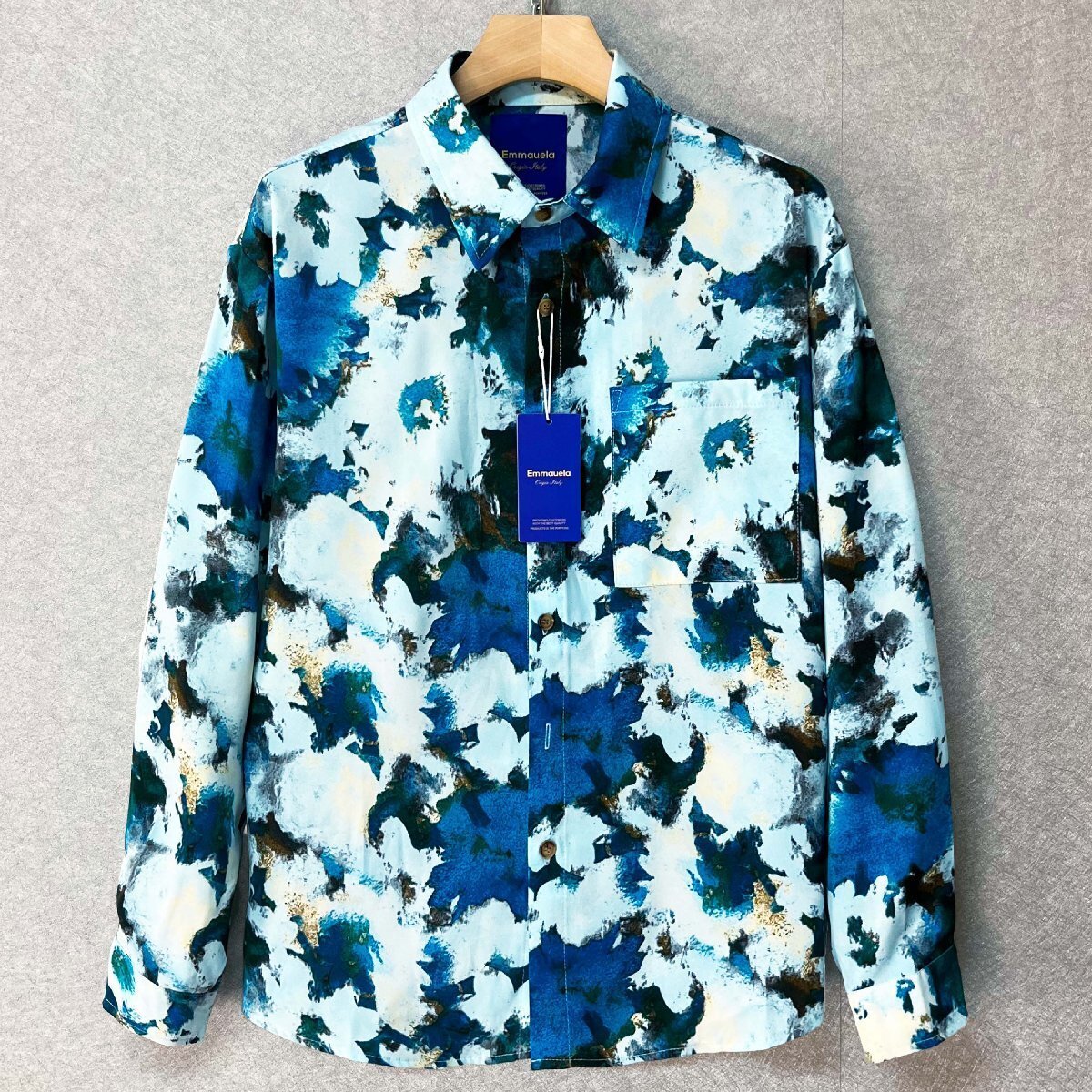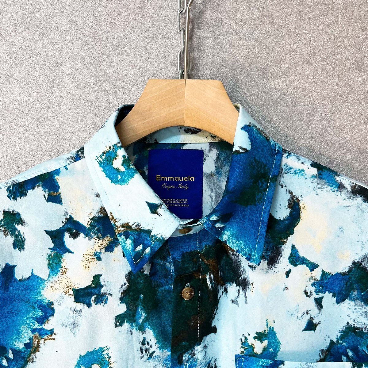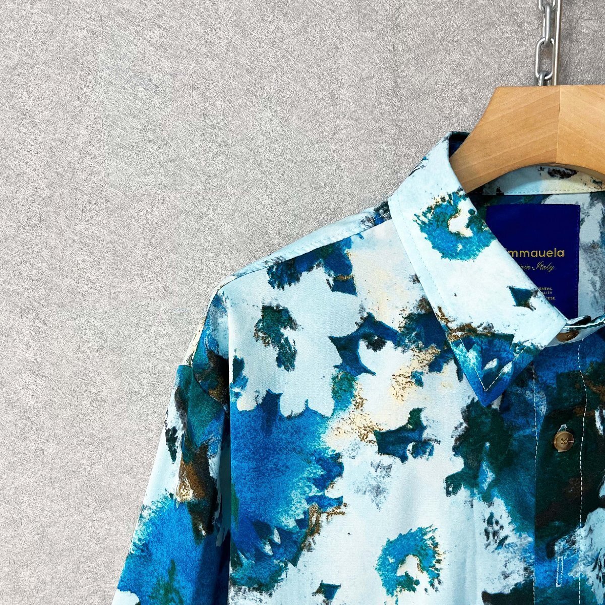 高級・長袖 シャツ 定価4万◆Emmauela・イタリア・ミラノ発◆シルク混 薄手 ソフト 花柄 アロハシャツ 開襟 カジュアル 旅行 街着 秋 M [浏览原始页面]