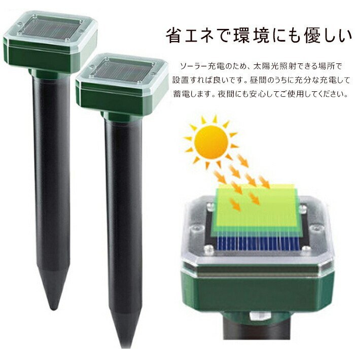 動物撃退器 2本セット モグラ撃退器 超音波 モグラ退治 モグラ駆除 ソーラー式 超音波 防獣グッズ 動物撃退器 モグラ退治☆2色選択/1点