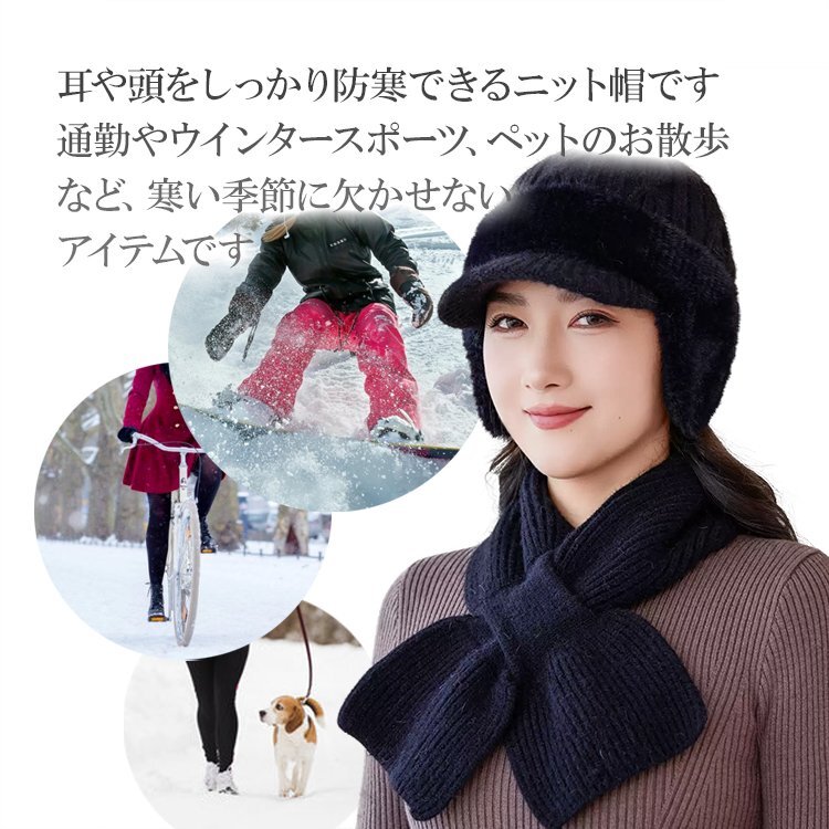 ◆耳あてニット帽 ニットキャップ つば付き 耳当て付き帽子 裏起毛 イヤーマフ 防寒 男女兼用 ウィンタースポーツ スノボ スキー キャンプ 通学 通勤 フリーサイズ【グレー】DML6868