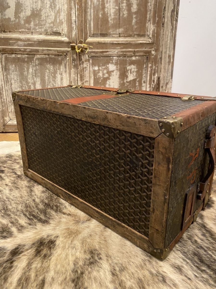 100年ほど前の本物商品、レッドカラーのライン、鍵の付属あり、イニシャル有り。