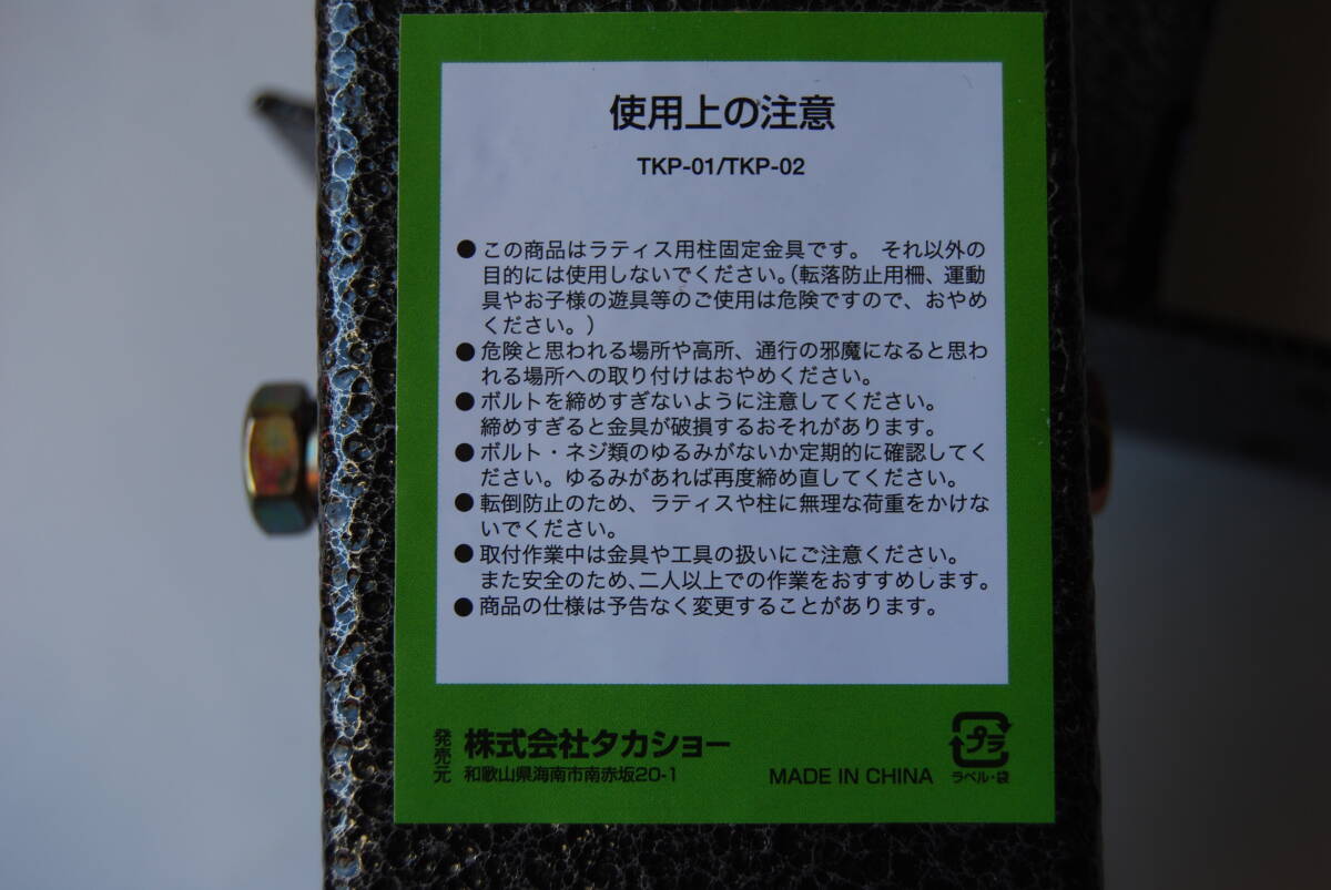 タカショー (Takasho) ラティス用柱固定金具 ベースプレート TKP-02。2個まとめてお願いします。保存状態は、良好です。金具も附属します。発売時の定価は不明です。送料は、送料はレターパックプラスの600円をご負担ください。516-11