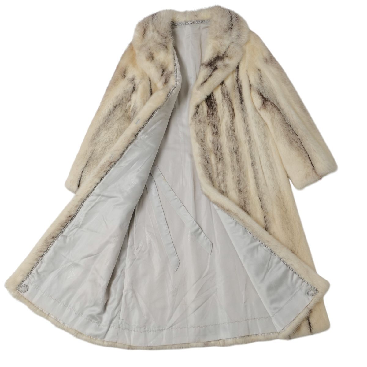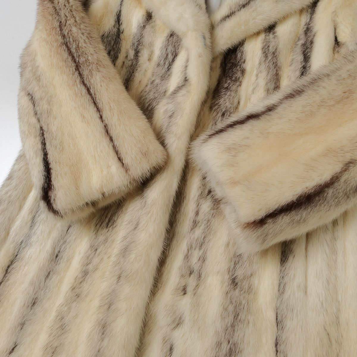 | GS4385◇クロスミンク ファーコート ロングコート 毛皮コート サイズ11 アイボリー×ブラウン系 着丈約105cm | |||