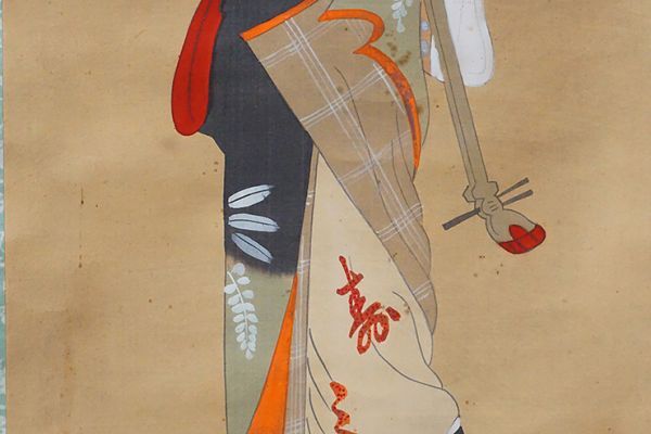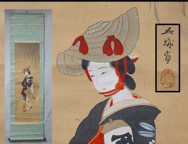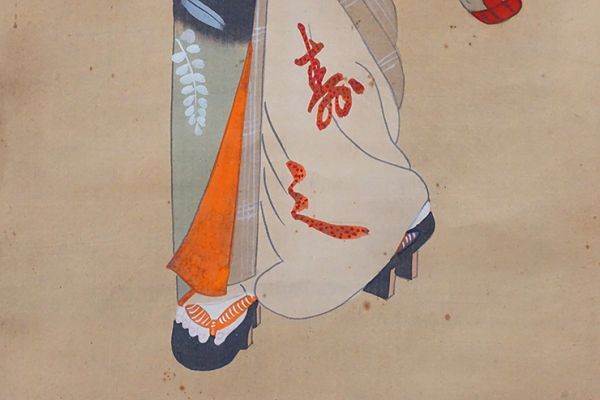 | 商品説明 | 真作、在銘 日本画美人画です。 所々シミがあります。 画像をご参照下さい。 宜しくお願いします。 | |