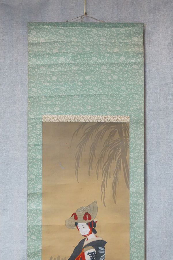 | D-343■真作 美人画 絹本彩色 掛軸 日本画仏教美術 | ||
