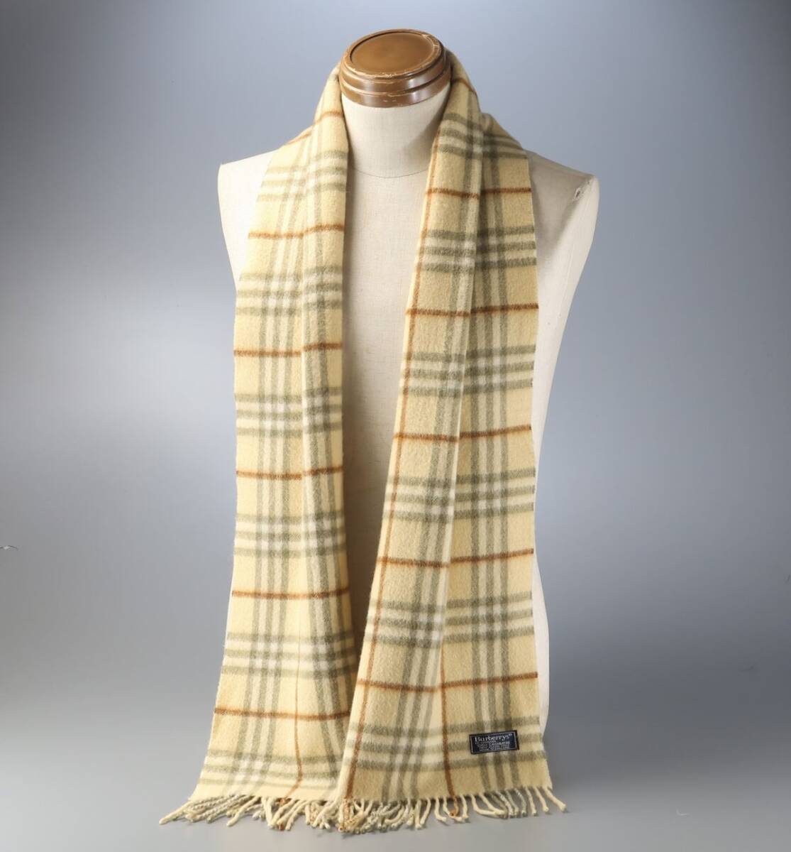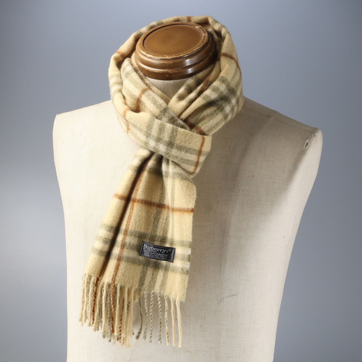 | TJ3445◎イングランド製 Burberrys バーバリー チェック柄 総カシミヤマフラー ストール ショール イエロー系 全長:約181cm | |||