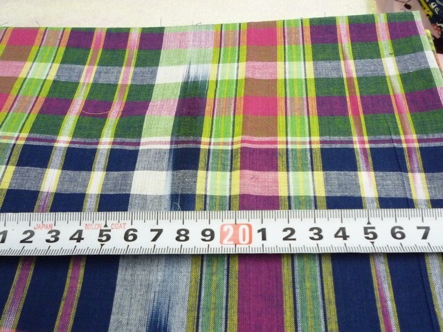 100*50★グリーンなど・チェック柄の・ハギレ・生地・布★0537-39