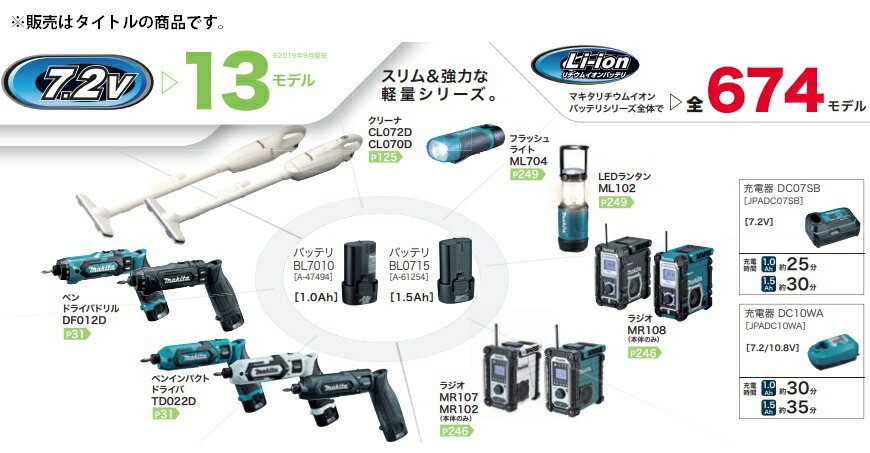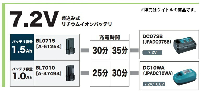 マキタ makita7.2V 差込み式リチウムイオンバッテリ BL0715 A-61254 新・7.2Vバッテリー採用■仕様・電圧:7.2V・容量:1.5Ah・商品重量:140g・バッテリータイプ:リチウムイオン88381473507