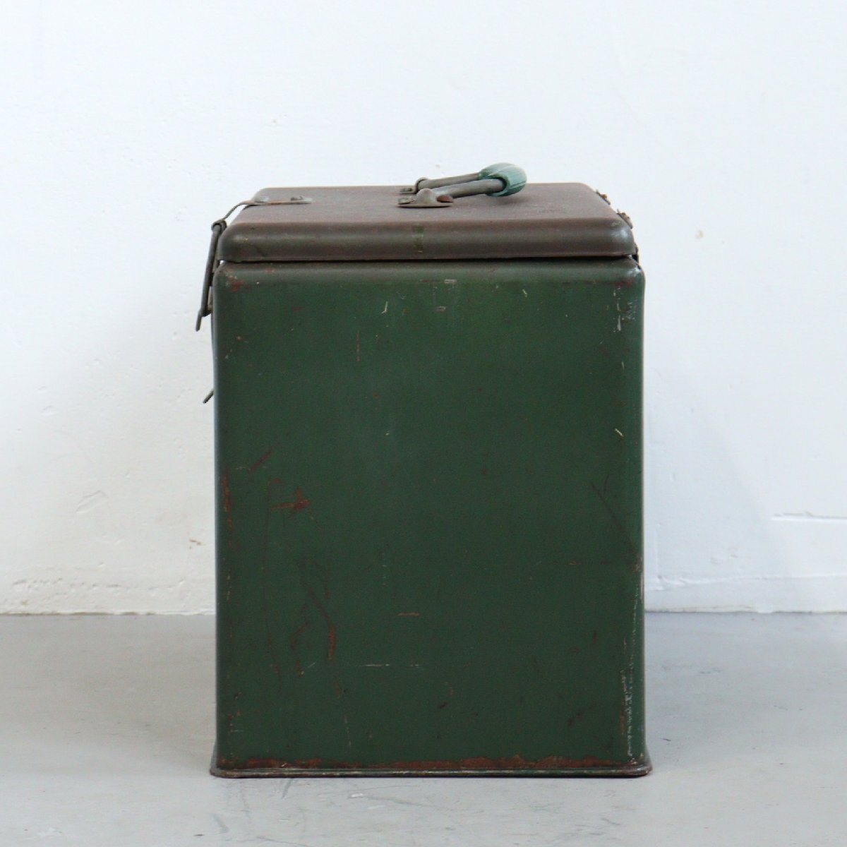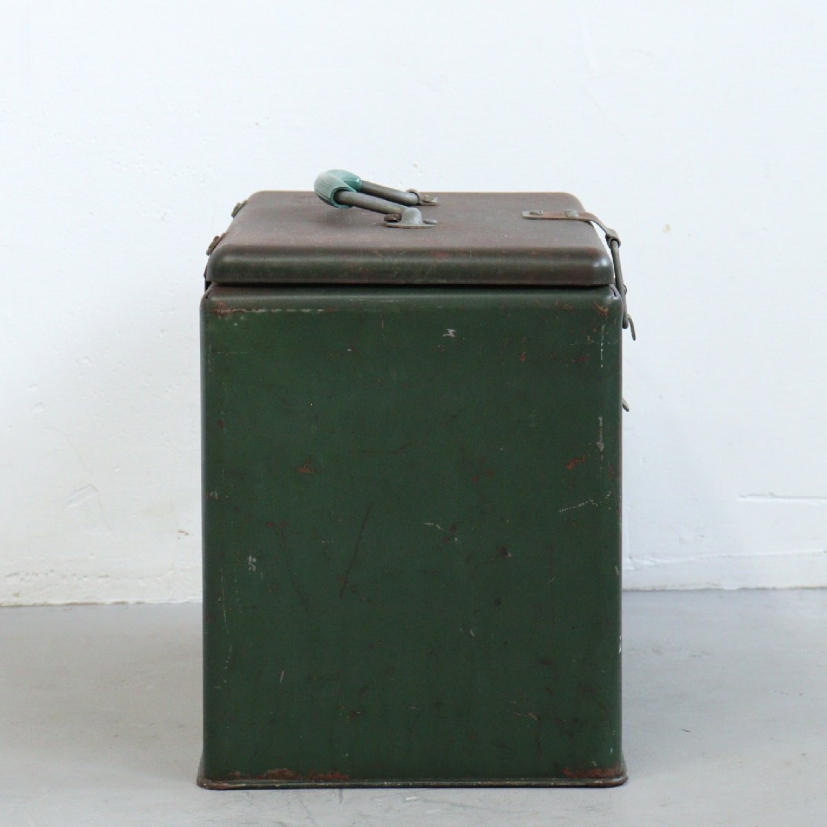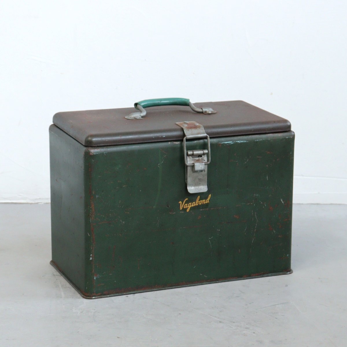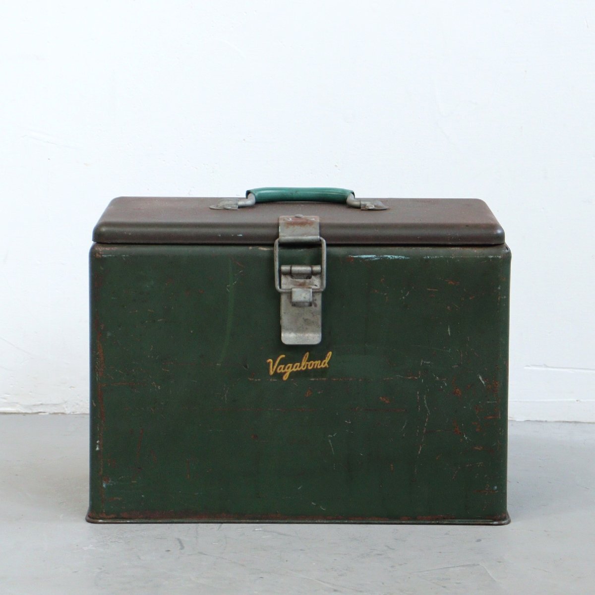 | 商品説明 explanation | 推定1950年代頃の「Vagabond Hemp & Co.」社製のメタル製クーラーボックスです。 グリーンのボディーに経年による蓋のサビ具合が、ヴィンテージらしい雰囲気です。 キャンプやディスプレイ小物などにいかがでしょうか。 |