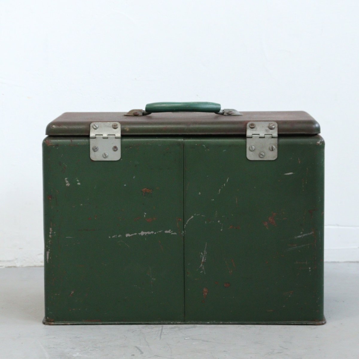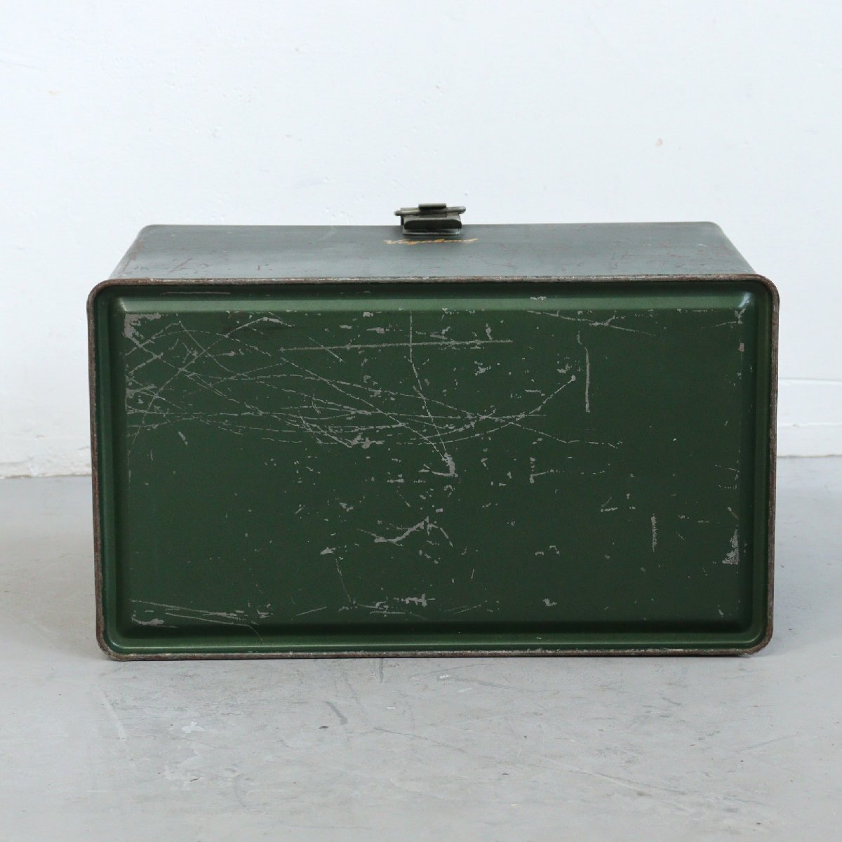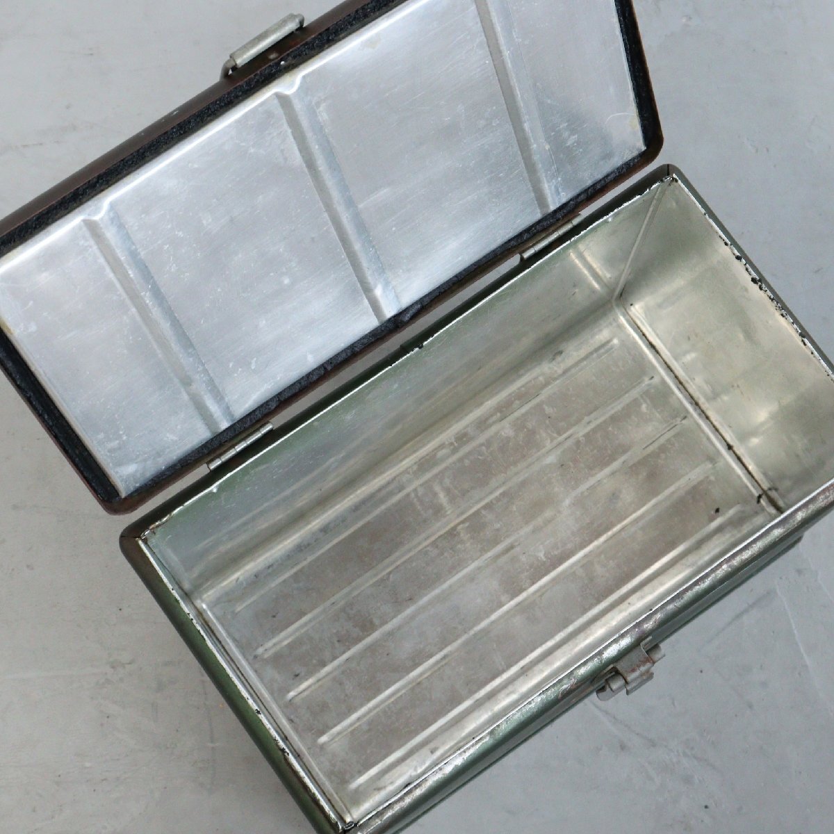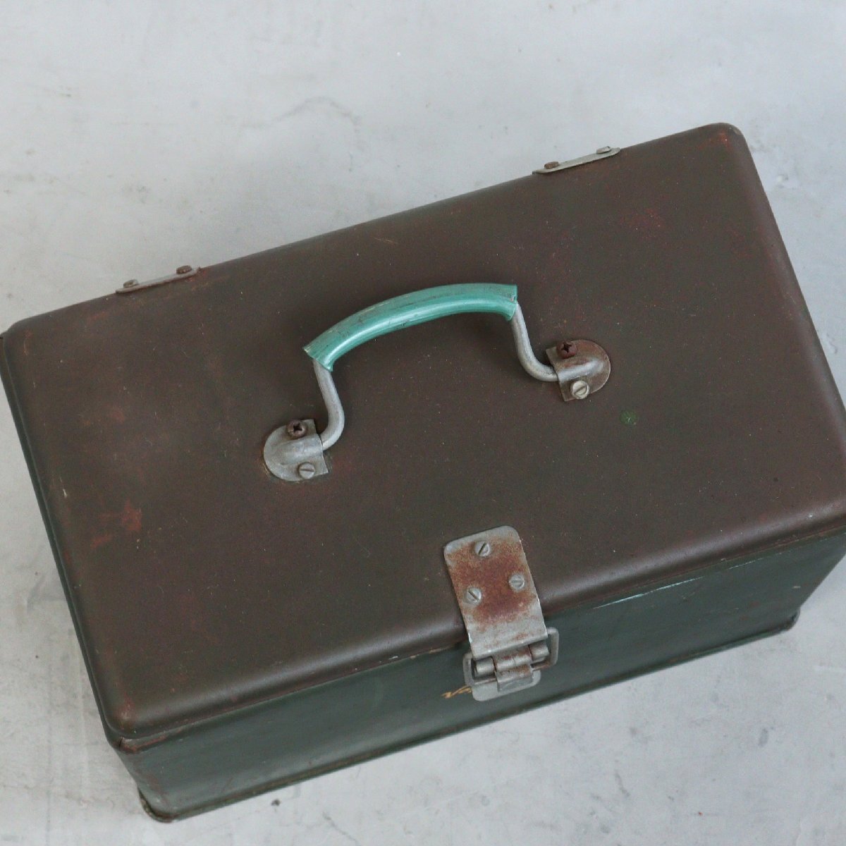 | 商品説明 explanation | 推定1950年代頃の「Vagabond Hemp & Co.」社製のメタル製クーラーボックスです。 グリーンのボディーに経年による蓋のサビ具合が、ヴィンテージらしい雰囲気です。 キャンプやディスプレイ小物などにいかがでしょうか。 |
