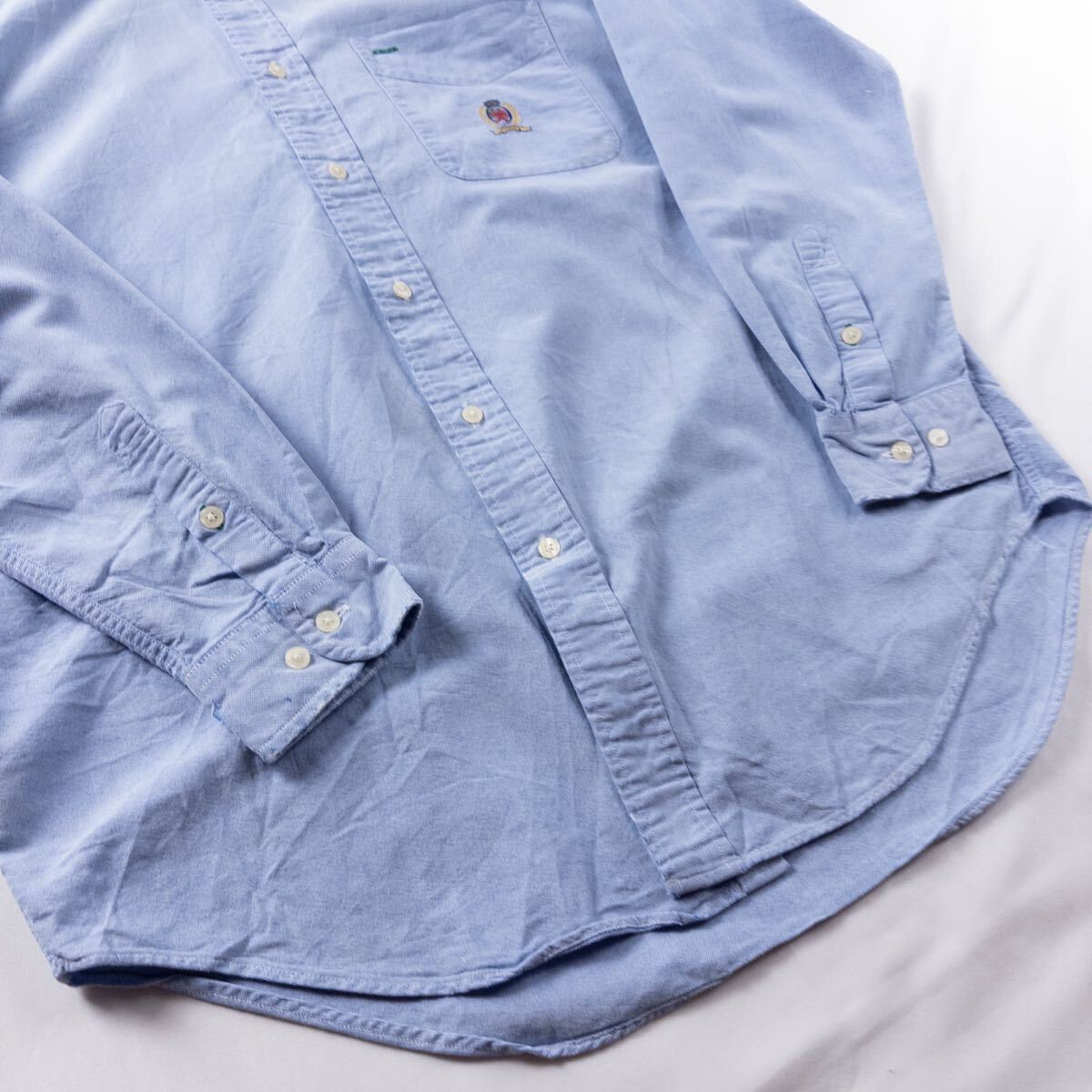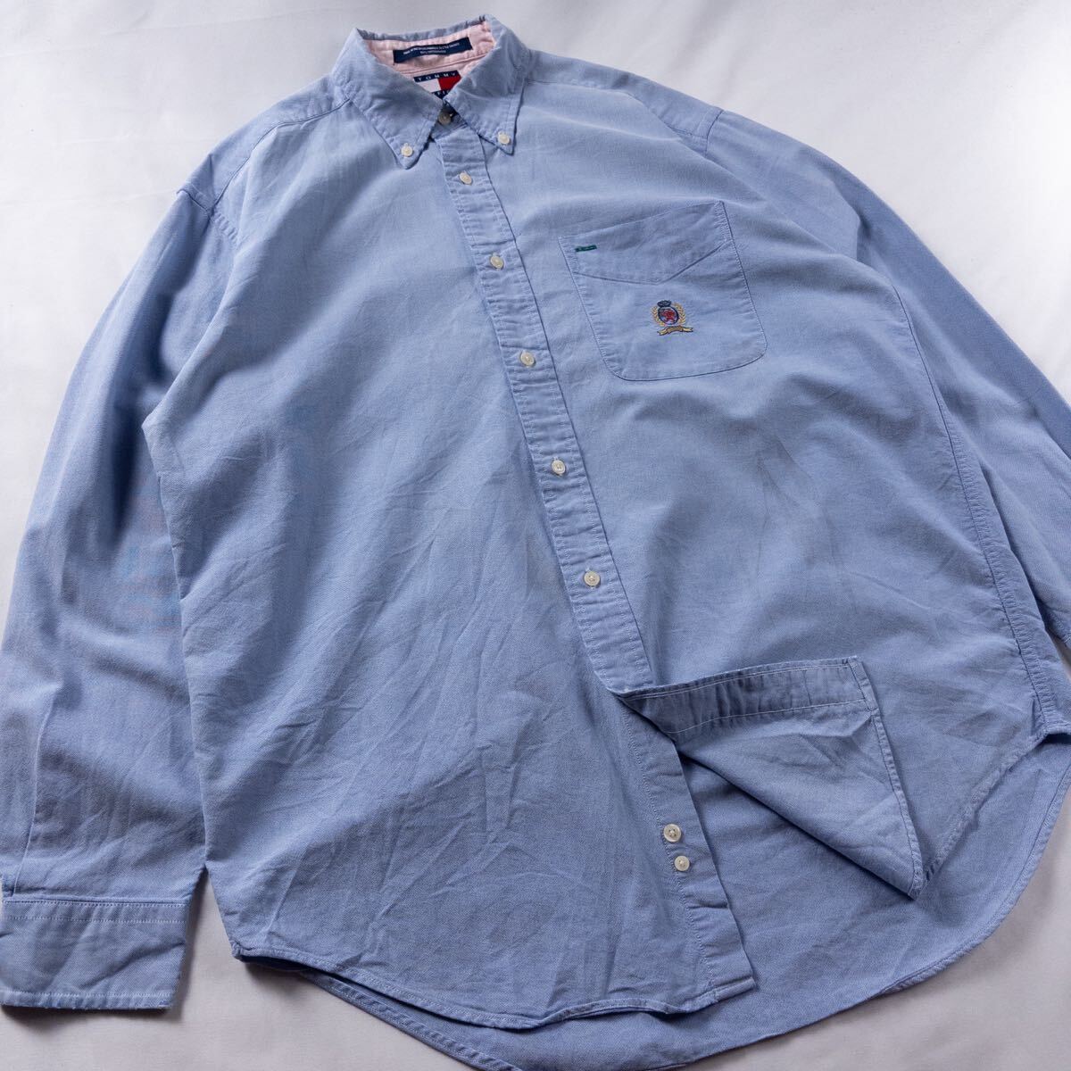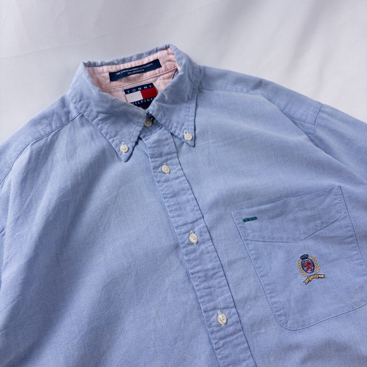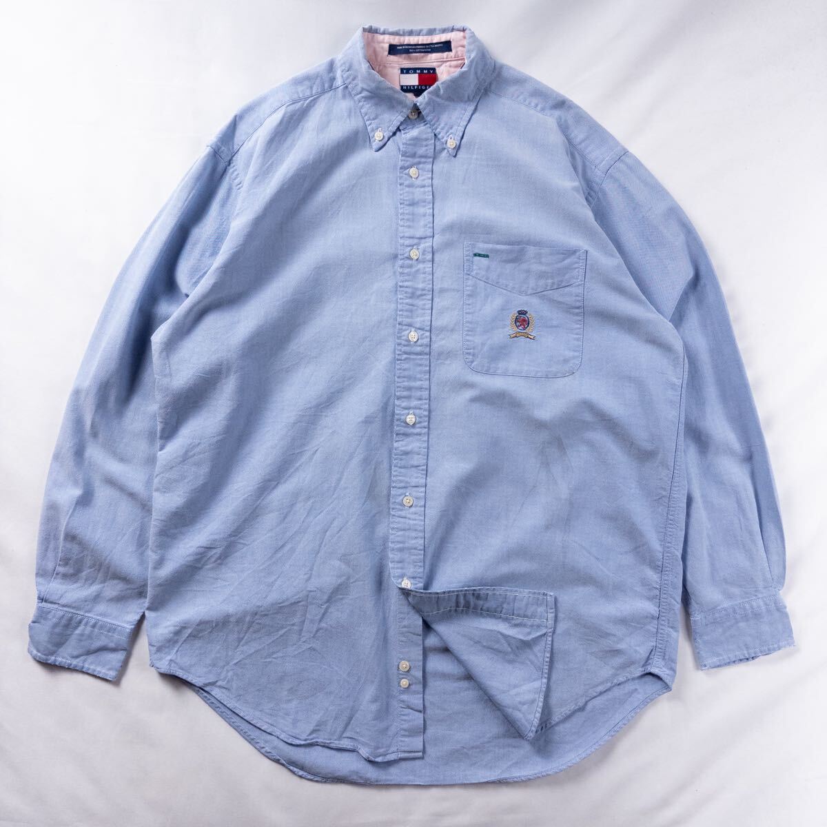 US Vintage TOMMY HILFIGER トミーヒルフィガー コットン100% ボタンダウン オックスフォード 刺繍 ロゴ フェード ライトブルー デザインシャツ| 出价者 | 信用 | 价格 | 时间 |