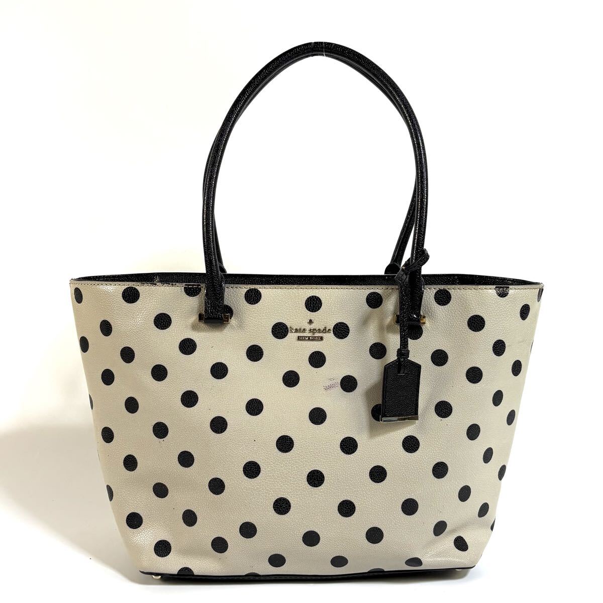 | 【美品】kate spade ケイトスペード PVC レザー トートバッグ ハンドバッグ ドット ホワイト ブラック カード付き |