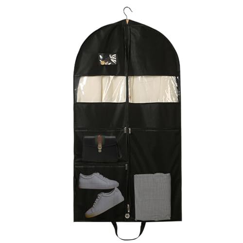 ガーメントバッグ スーツバッグ 透明窓付き 衣装バッグ スーツ カバー スーツ 持ち運び バッグ スーツ収納袋 ガーメントケース 服型崩れ防止 軽量 掛けやすい 防水 防塵 大容量 折りたたみ 季節替え 靴も入る 冠婚葬祭 ビジネス 出張 旅行 小物ポケット付き -L(152*60*10cm)