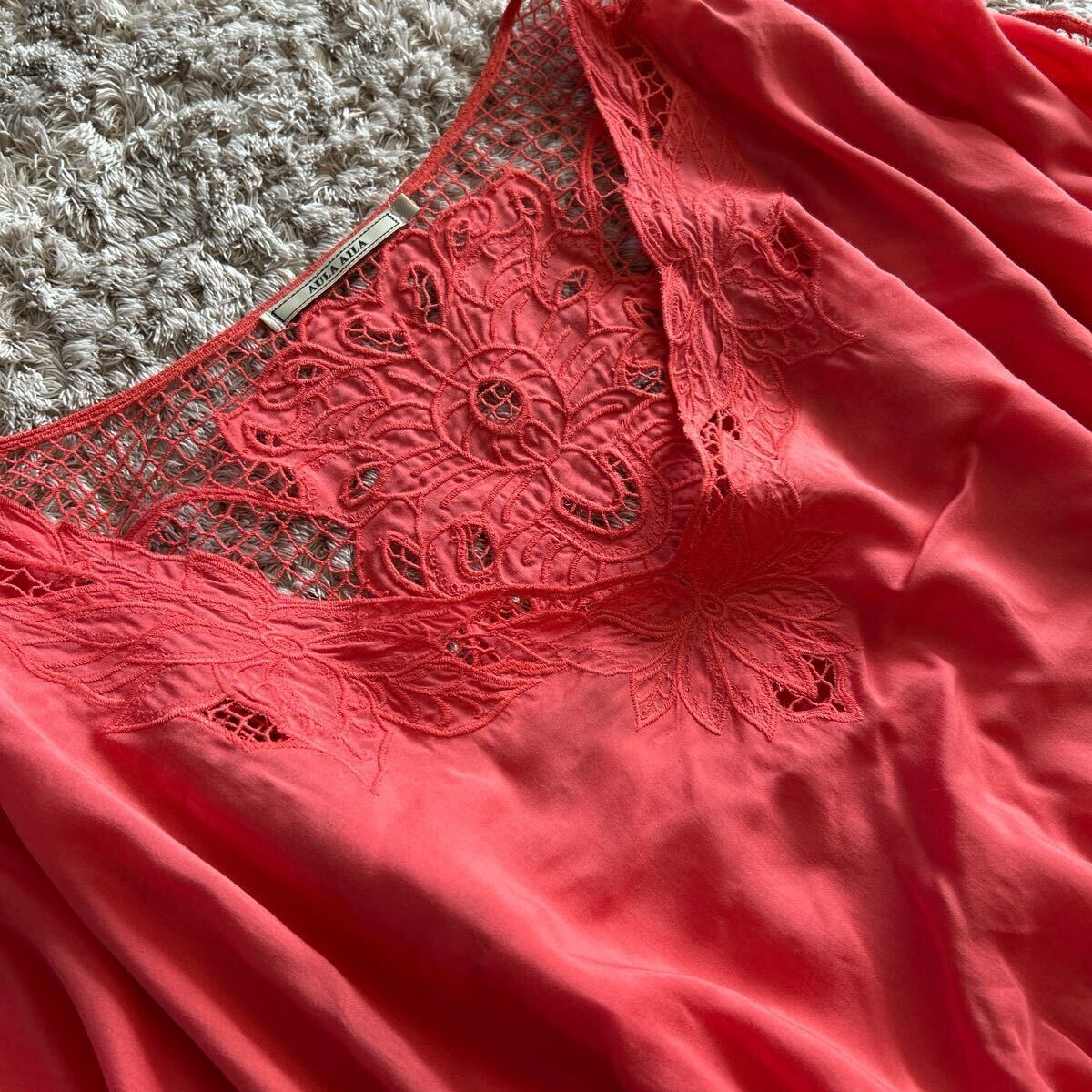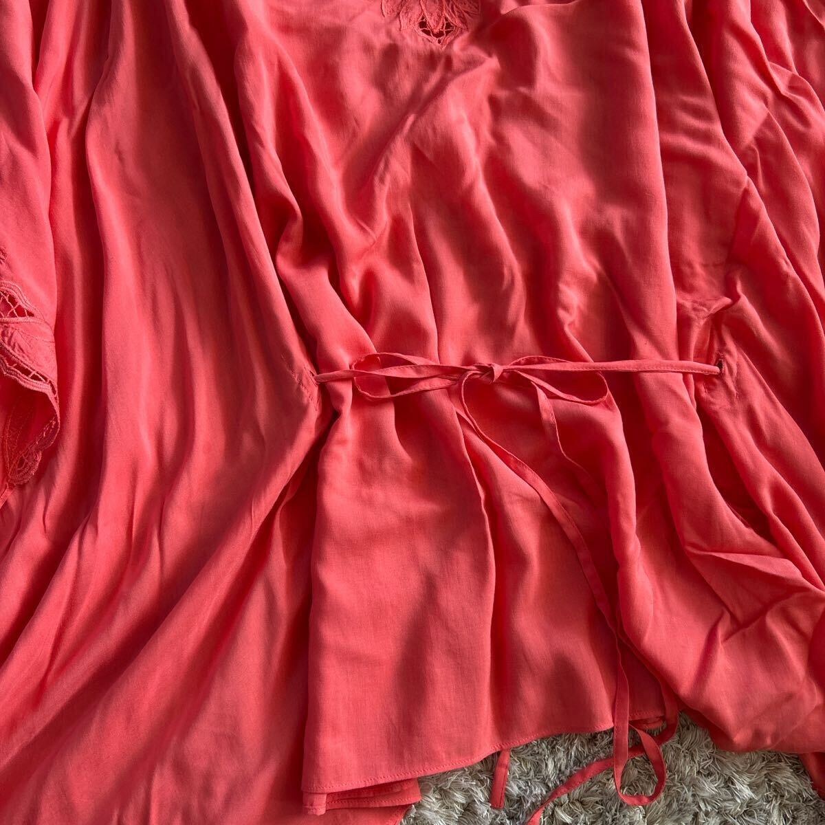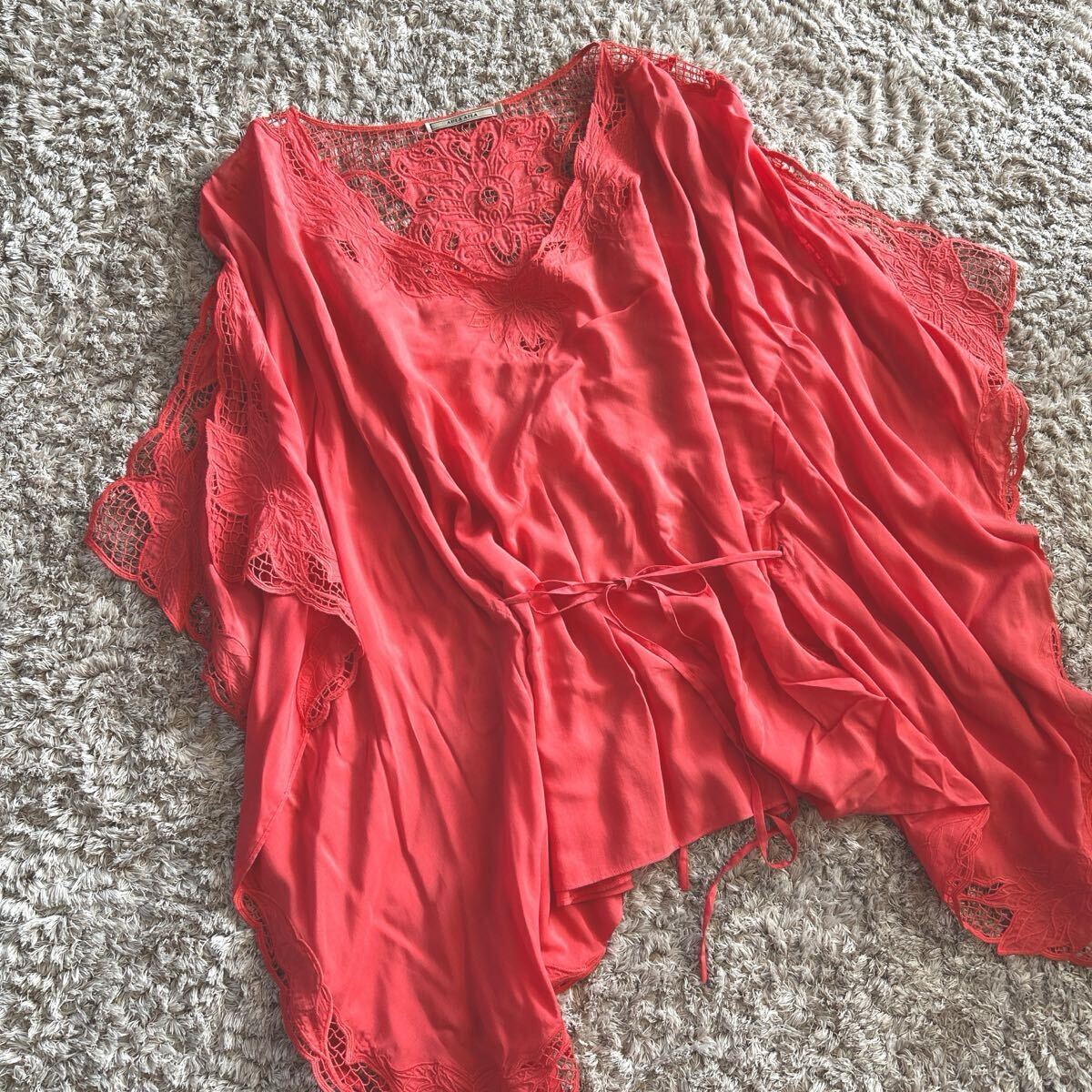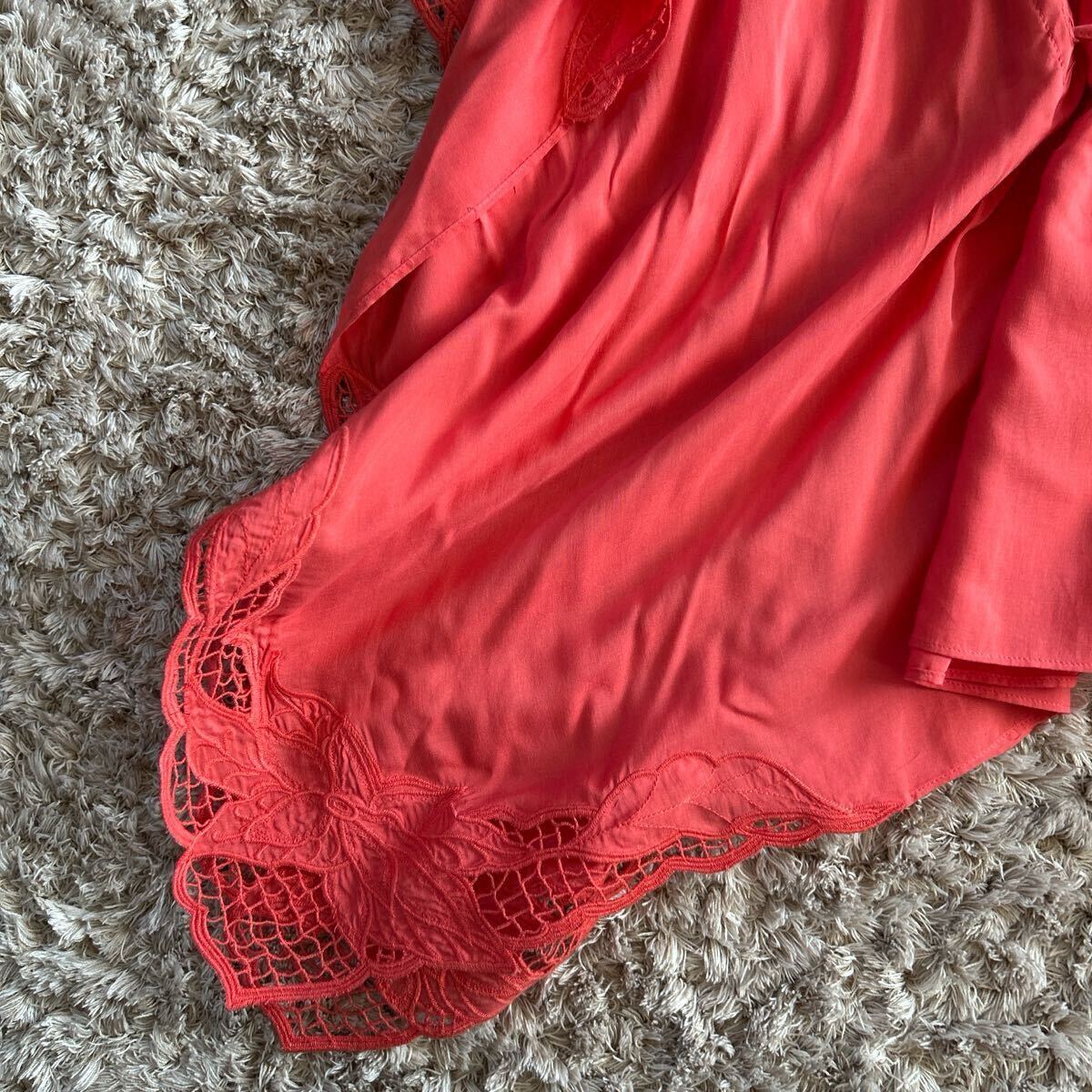アウラアイラのコーラルピンクのレース装飾が施されたアシンメトリーシャツ。| 出价者 | 信用 | 价格 | 时间 |