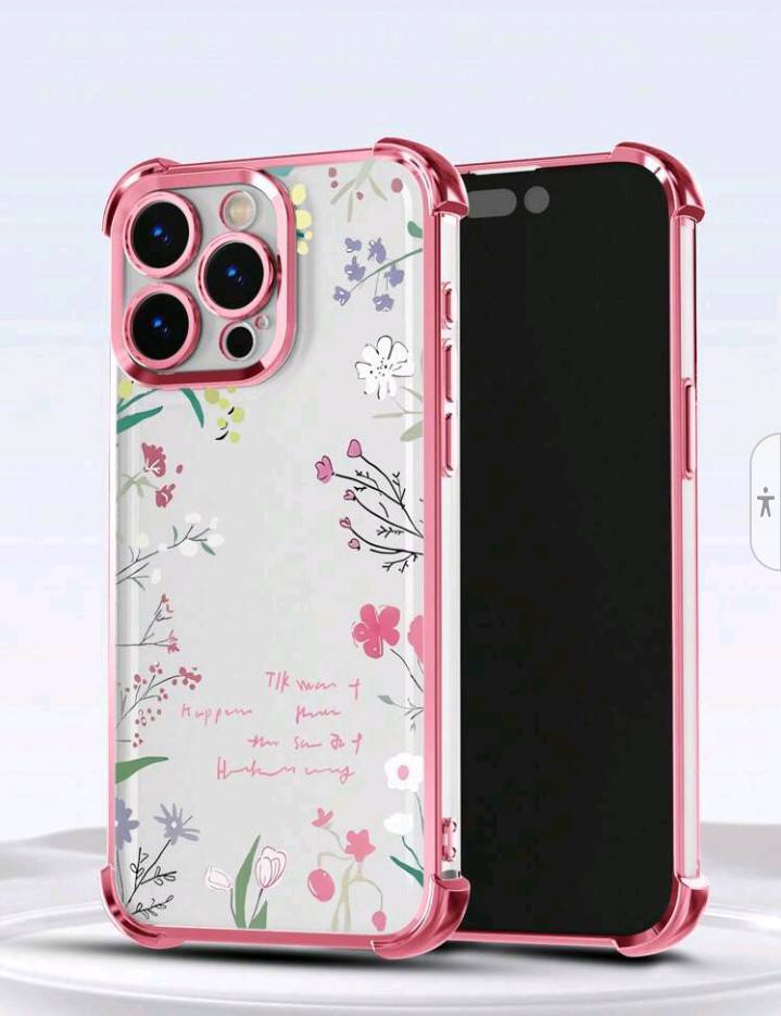 GalaxyS21 ピンクフラワー柄 メッキ加工風 Galaxyケース