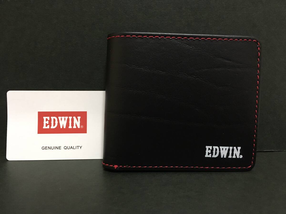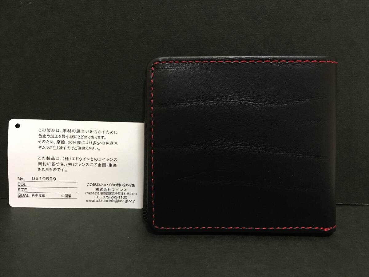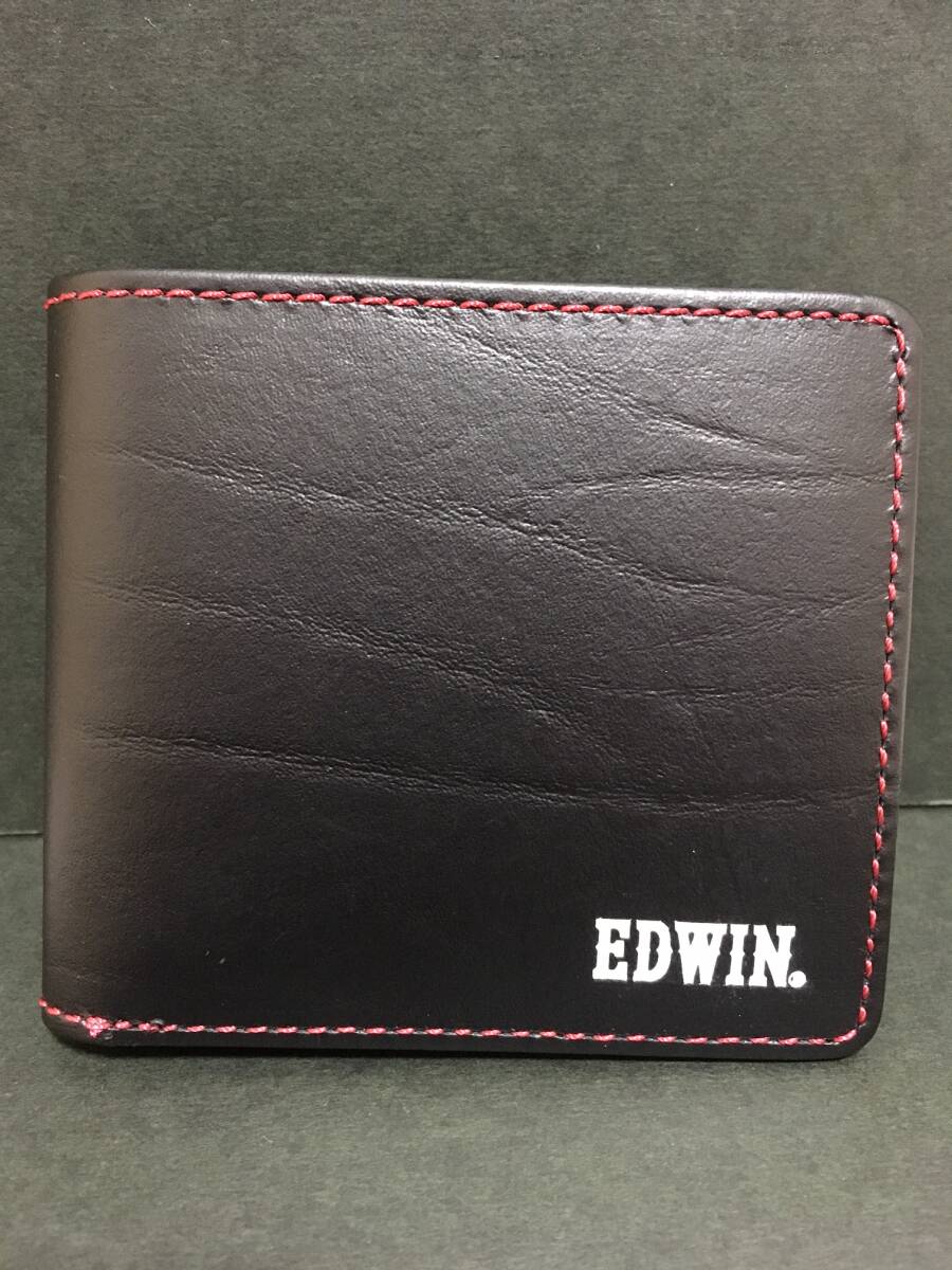EDWIN/エドウイン 二つ折り財布☆彡 ブラック×レッド☆ 小銭入れあり ボンデッドレザー 財布 ウォレット 新品 ファンス